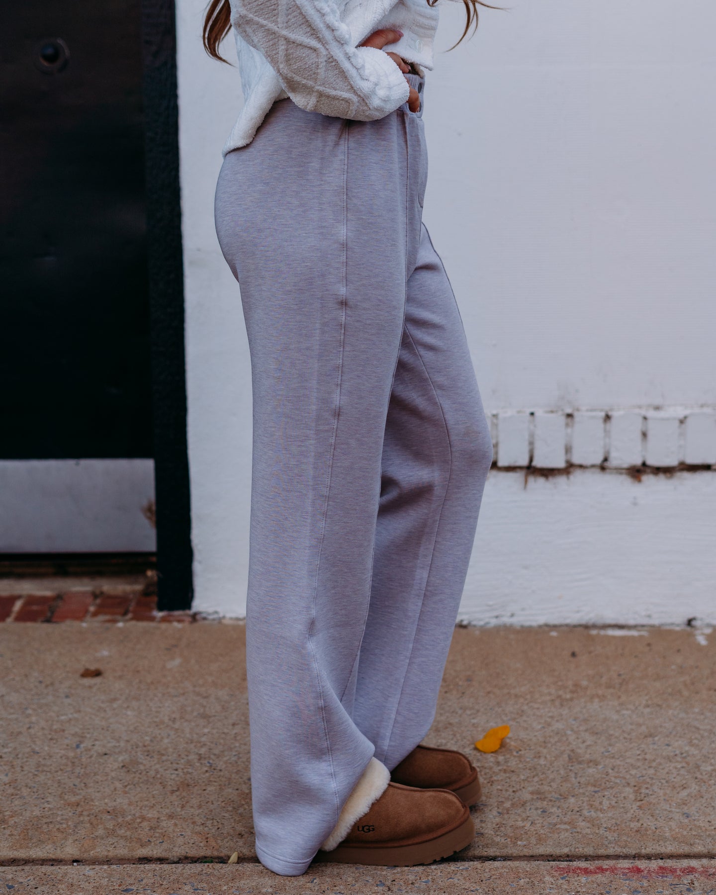 Step into comfort and style with the Spanx Brushed AE Flare Pant in Heather Cream. These pants hug your curves with a soft, brushed fabric that feels like a gentle hug all day long. The flattering flare adds a fun twist to your wardrobe, perfect for turning heads whether you're at brunch or the office. Embrace cozy chic with a touch of sass!