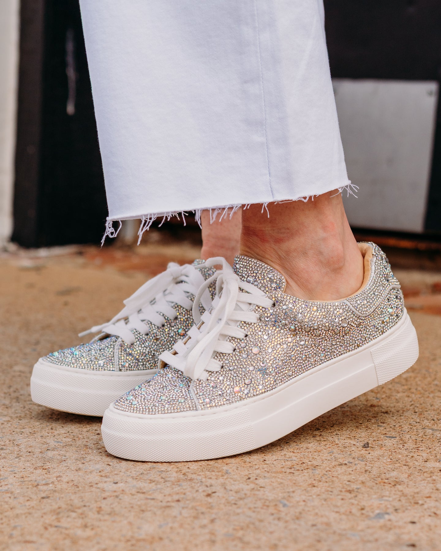 Put a little sparkle in your step with the SIDNY all-over Rhinestone platform Sneakers. These sparkly sneakers can be paired with your best dress or favorite jeans, offering a combination of glamour and stylish comfort. The SIDNY rhinestone shoe is available in a variety of captivating colors and prints to make any look a little more luxurious!