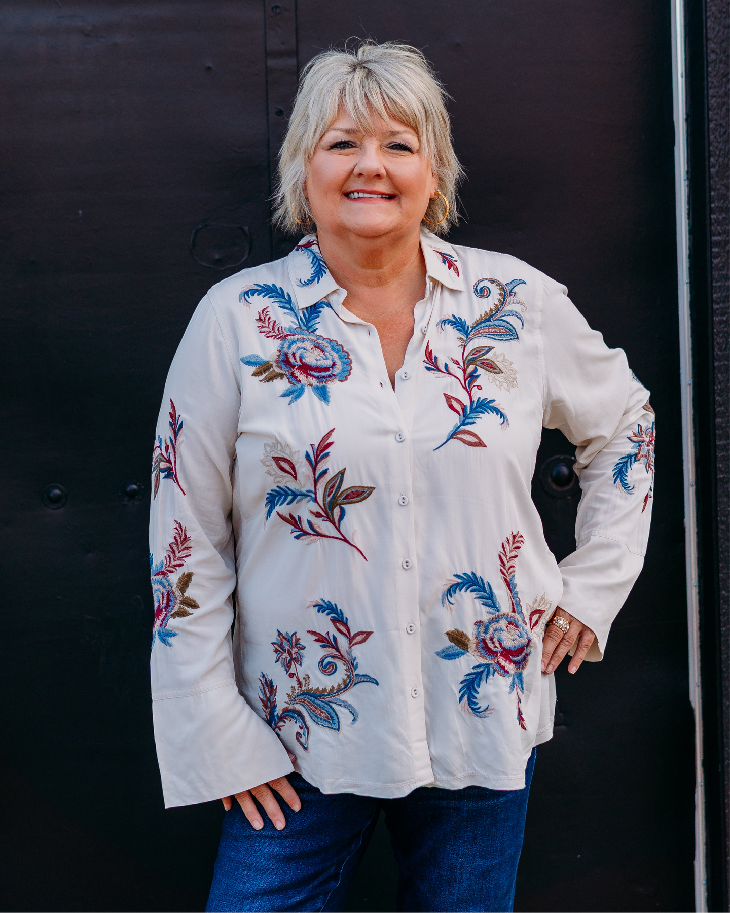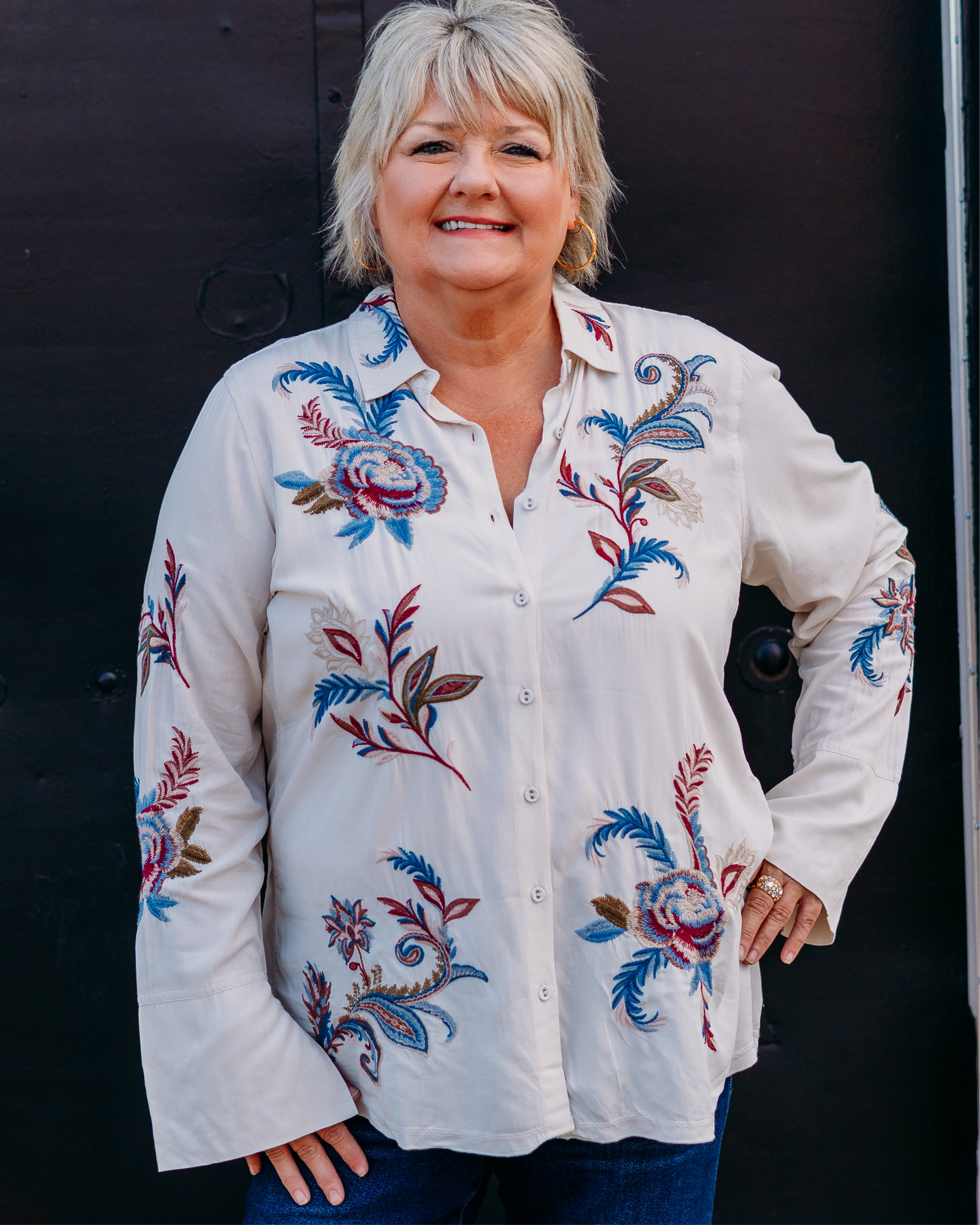 Bring some vintage vibes to your wardrobe with Johnny Was: Vintage Button Down Shirt in Shell. This playful and versatile button down shirt is perfect for adding a little flair to any outfit. With its unique shell design and relaxed fit, you'll be looking effortlessly stylish with every wear.