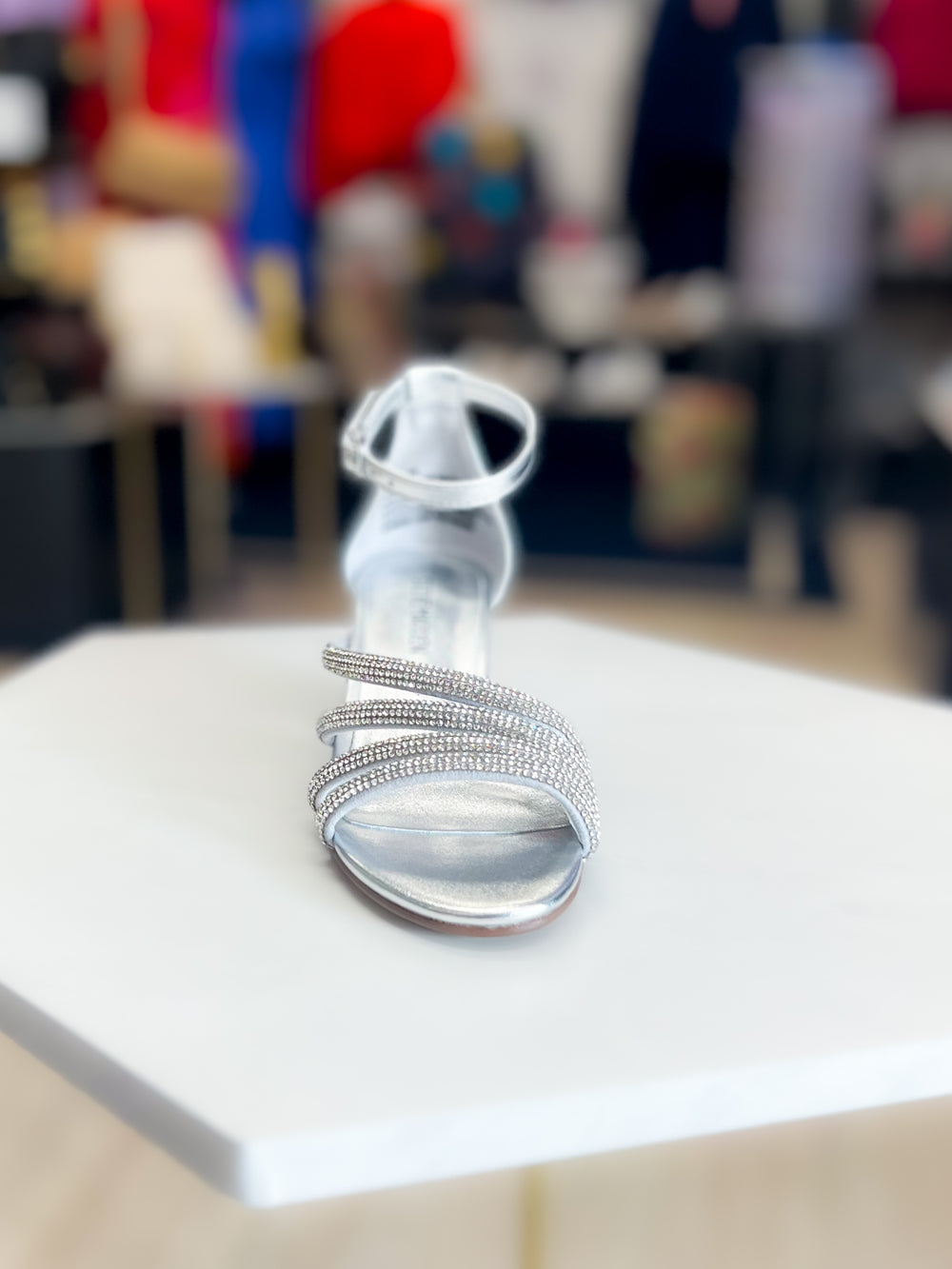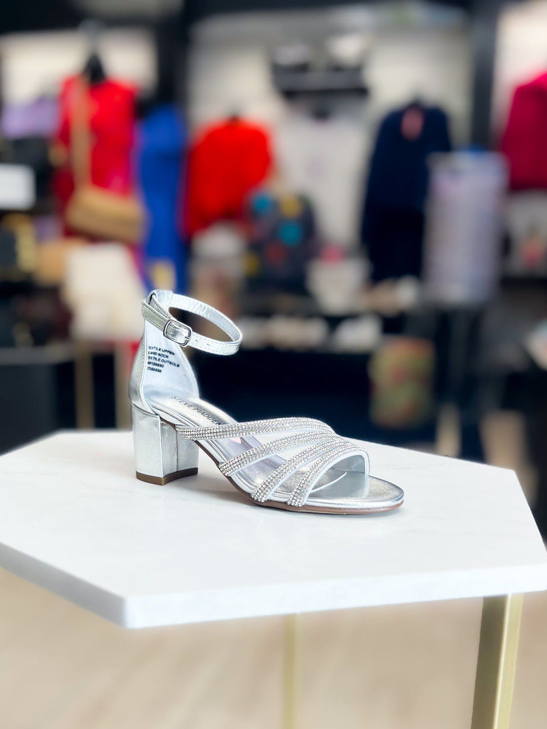 Steve Madden: Kids Haze Embellished Strappy Ankle Wrap Dress Sandals in Silver