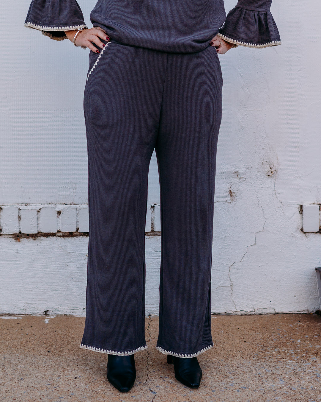 Multiples: Wide Band Elastic Waist Ankle Pant in Mid Grey (M48716PM)