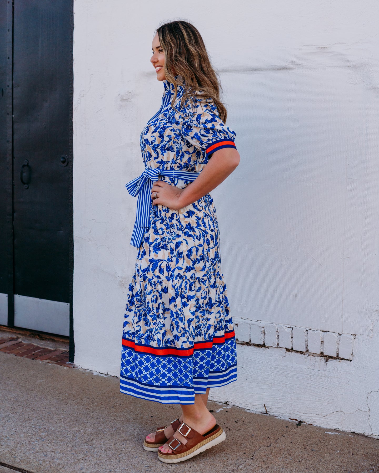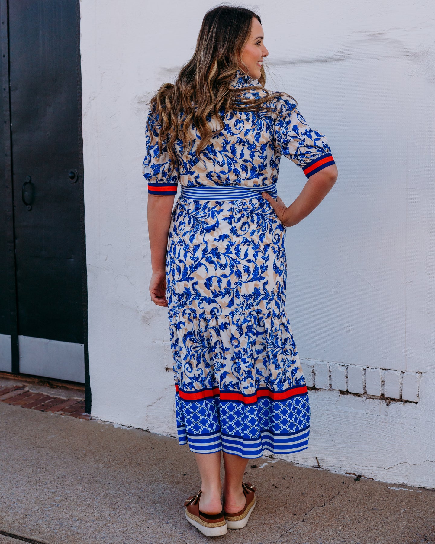 Effortless elegance meets everyday comfort in this button-front maxi dress. The crisp short sleeves and flowing silhouette create a breezy, put-together look perfect for warm weather styling. Tiled Ivy's rich, organic print adds visual interest while remaining versatile enough to pair with sneakers or sandals. From casual outings to relaxed gatherings, this dress transitions seamlessly through your day with timeless appeal.