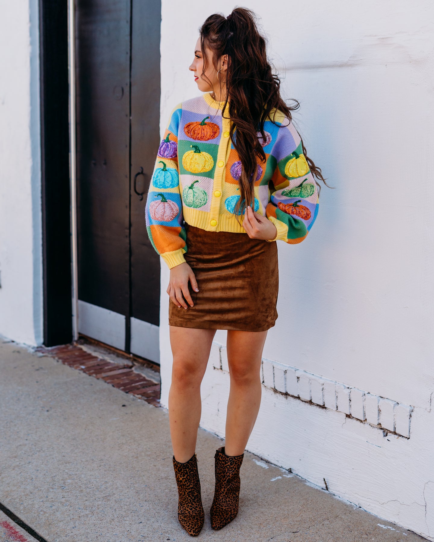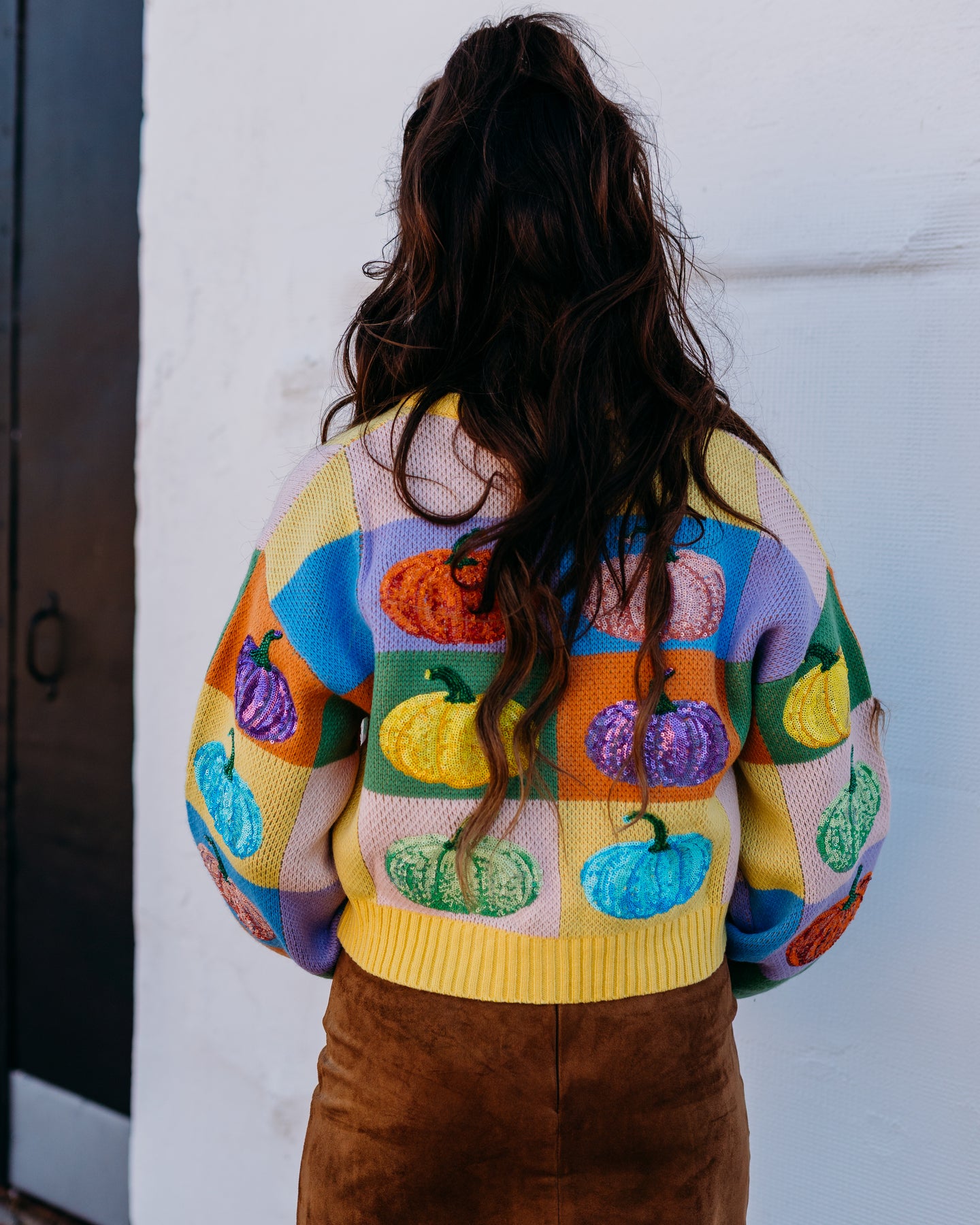 Add a pop of pastel charm to your wardrobe with the Queen of Sparkles Pumpkin Cardigan. This button-up beauty features a playful colorblock design in soft, pumpkin-inspired hues that brighten any day. Cozy yet lightweight, it’s perfect for layering on crisp mornings or cool evenings. Whether you're sipping pumpkin spice lattes or just shining bright, this cardigan brings fun and comfort to every outfit.