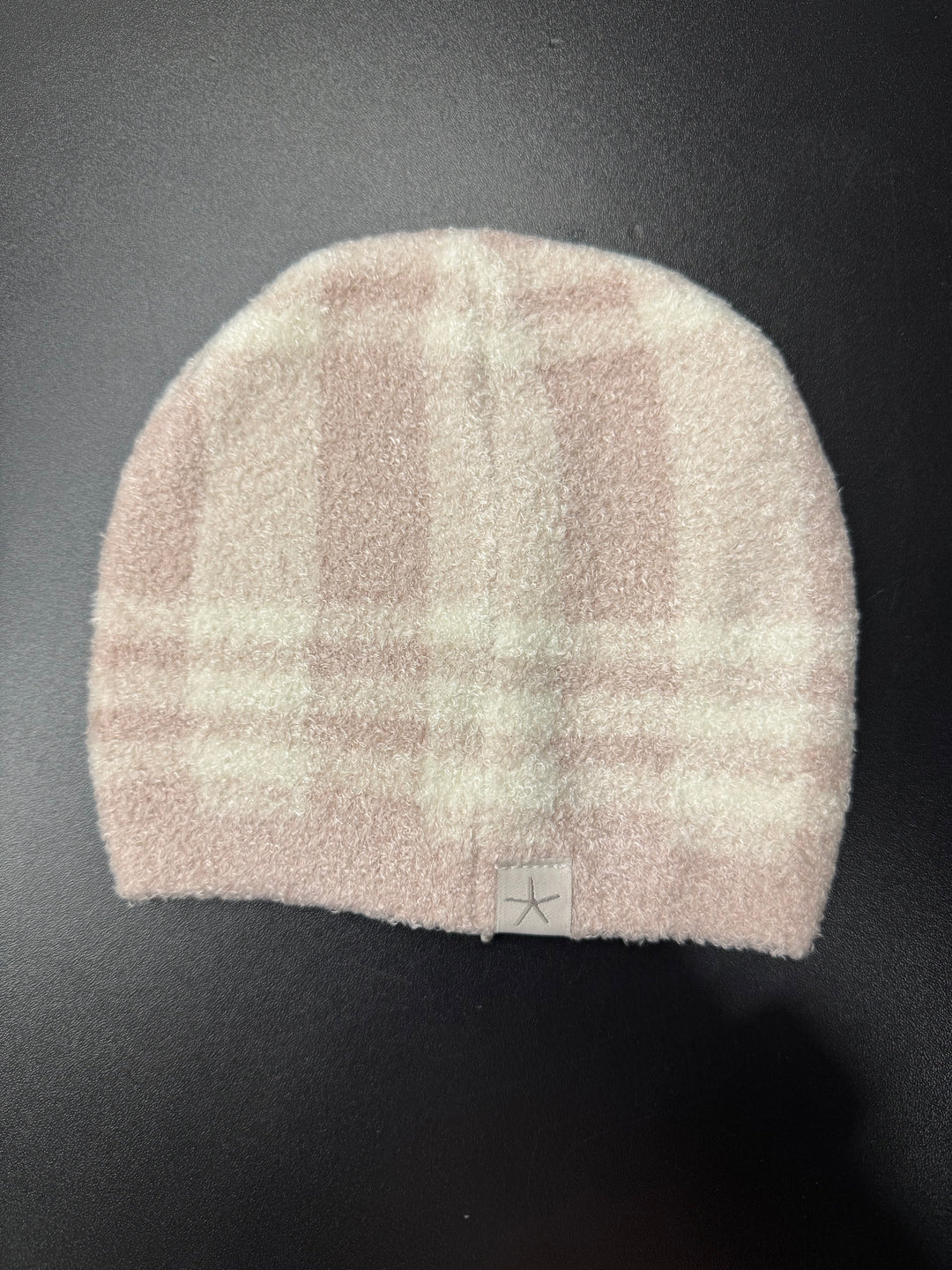 Barefoot Dreams: CCL Baby Plaid Beanie in Barely Pink / Cream