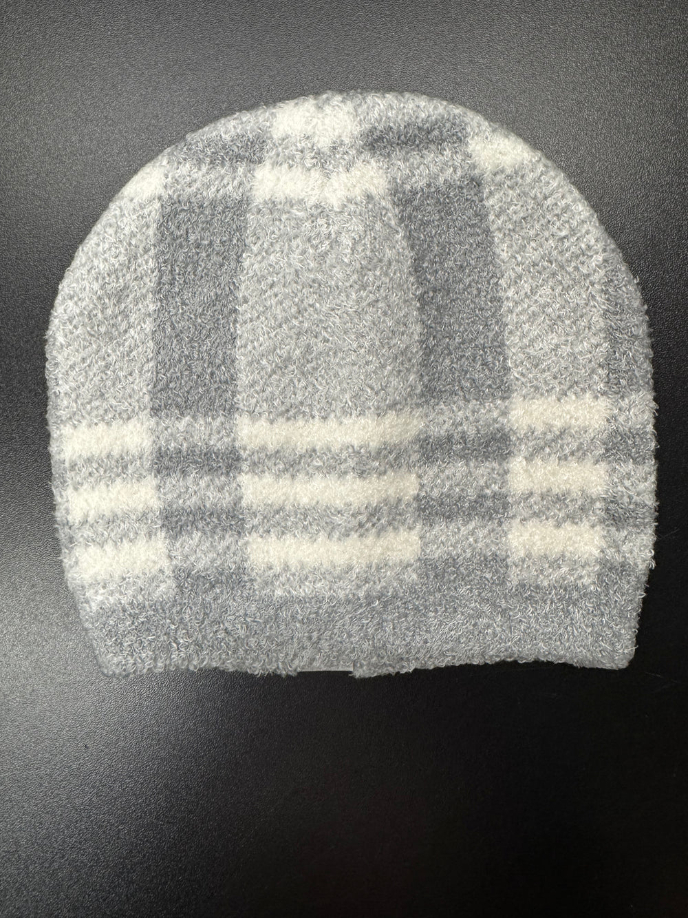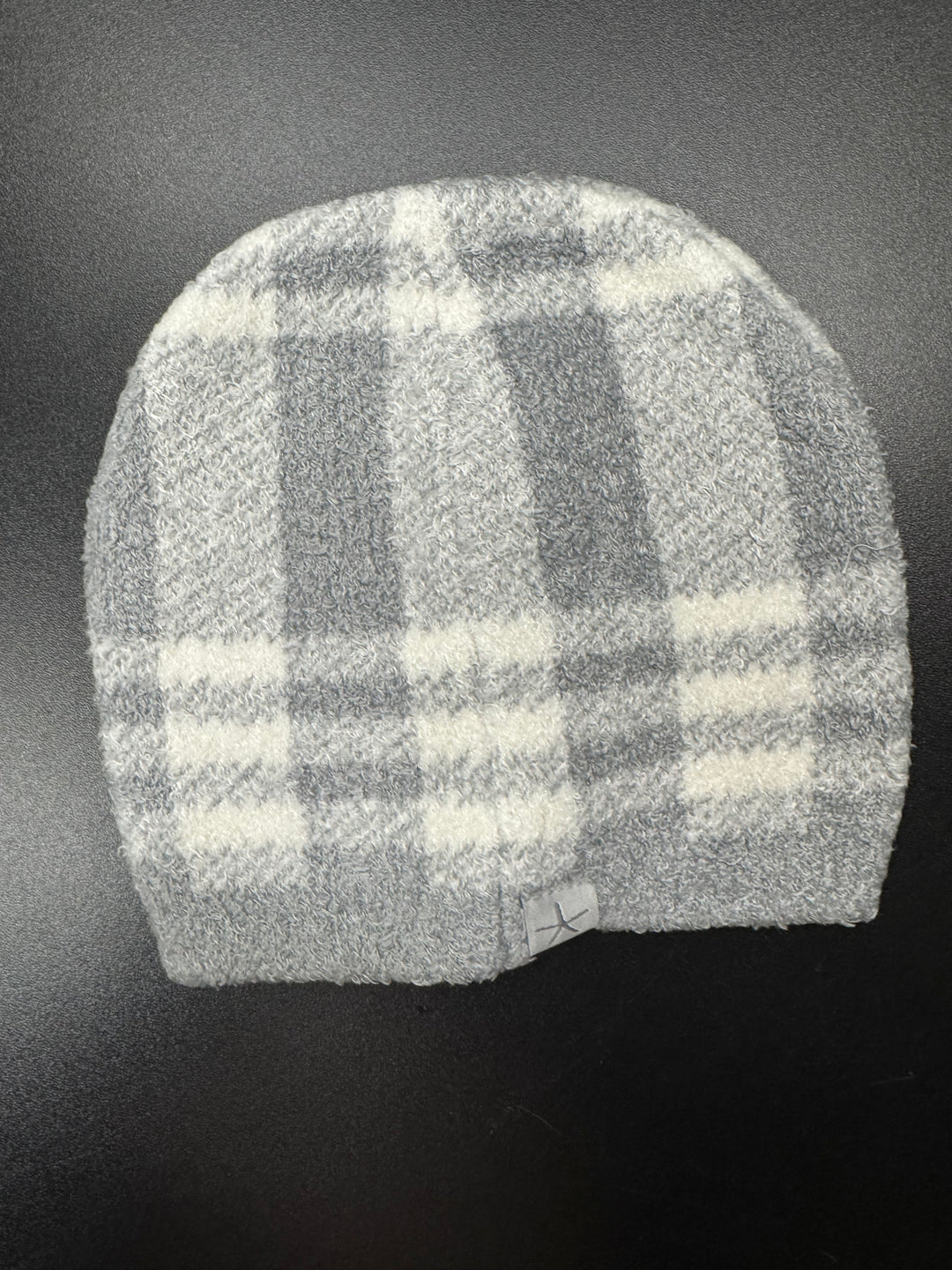 Barefoot Dreams: CCL Baby Plaid Beanie in Moonbeam / Cream
