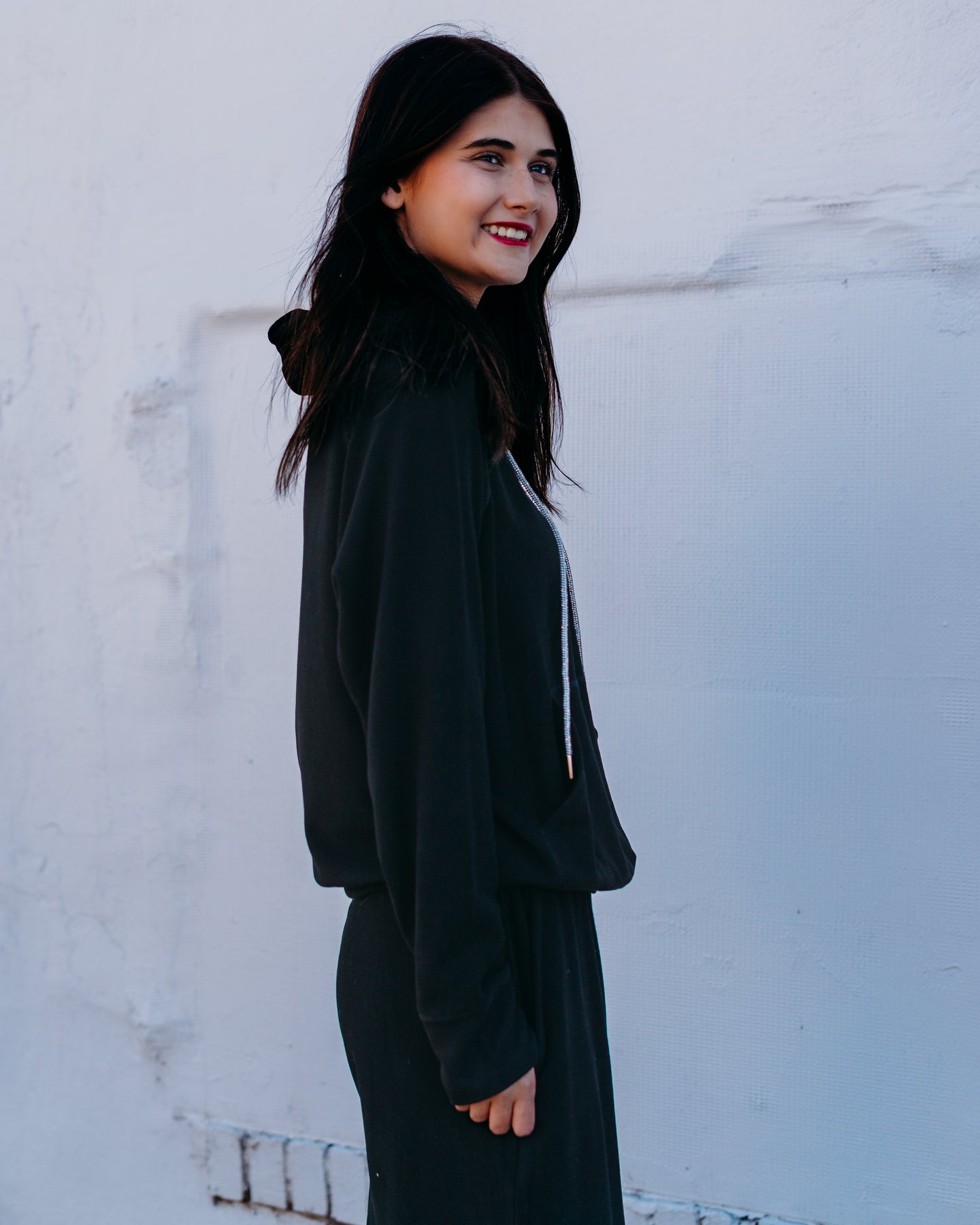 Karen Kane: Rhinestone Drawstring Hoodie in Black (4L50900)