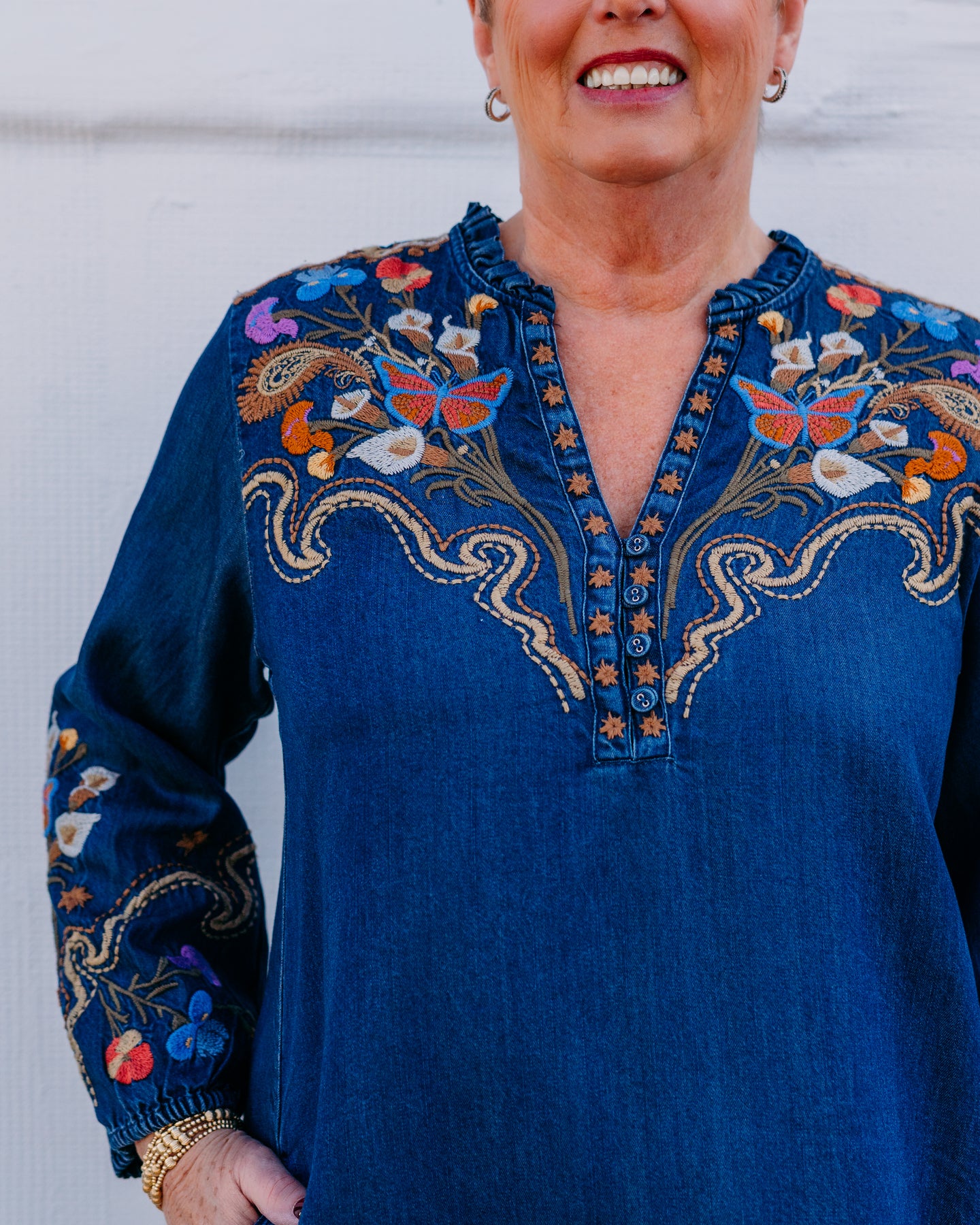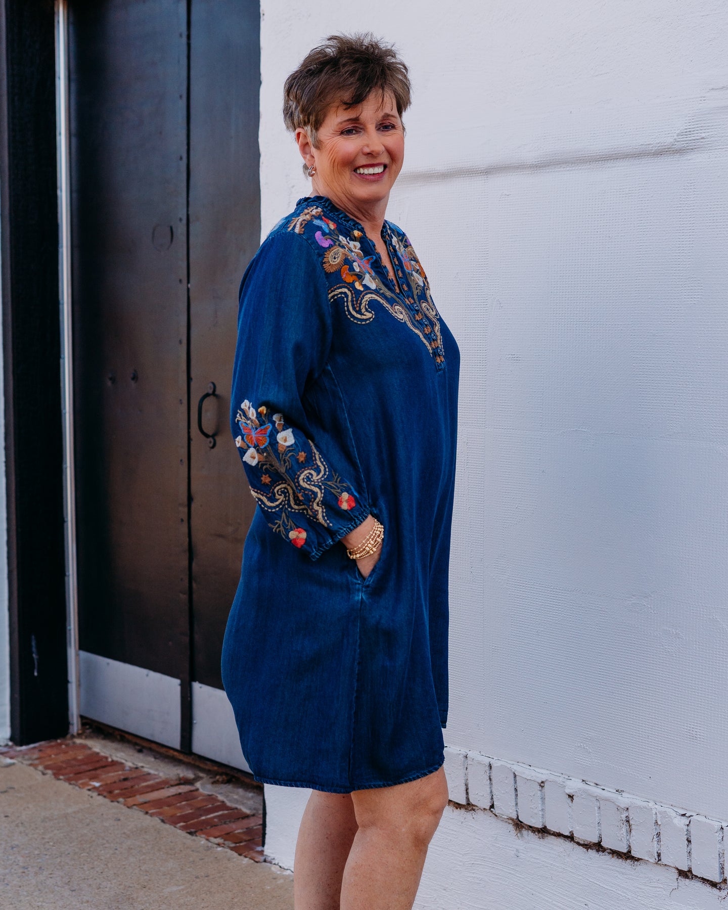 Johnny Was: Durago Ruffle Field Dress in Denim Blue