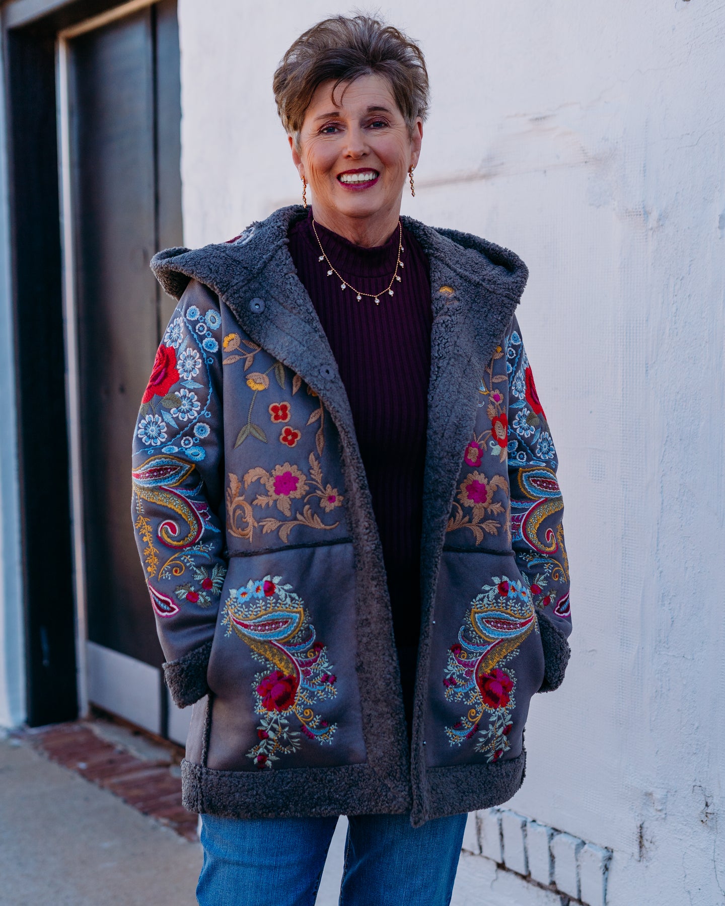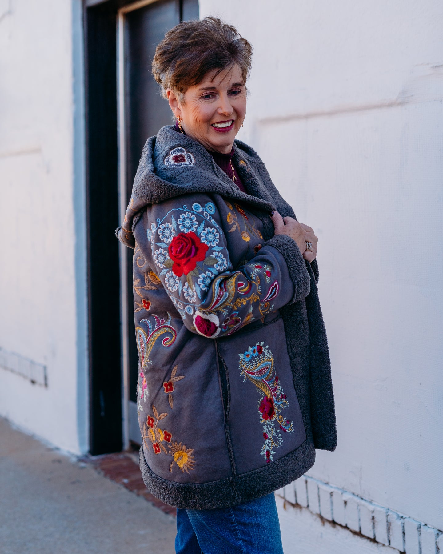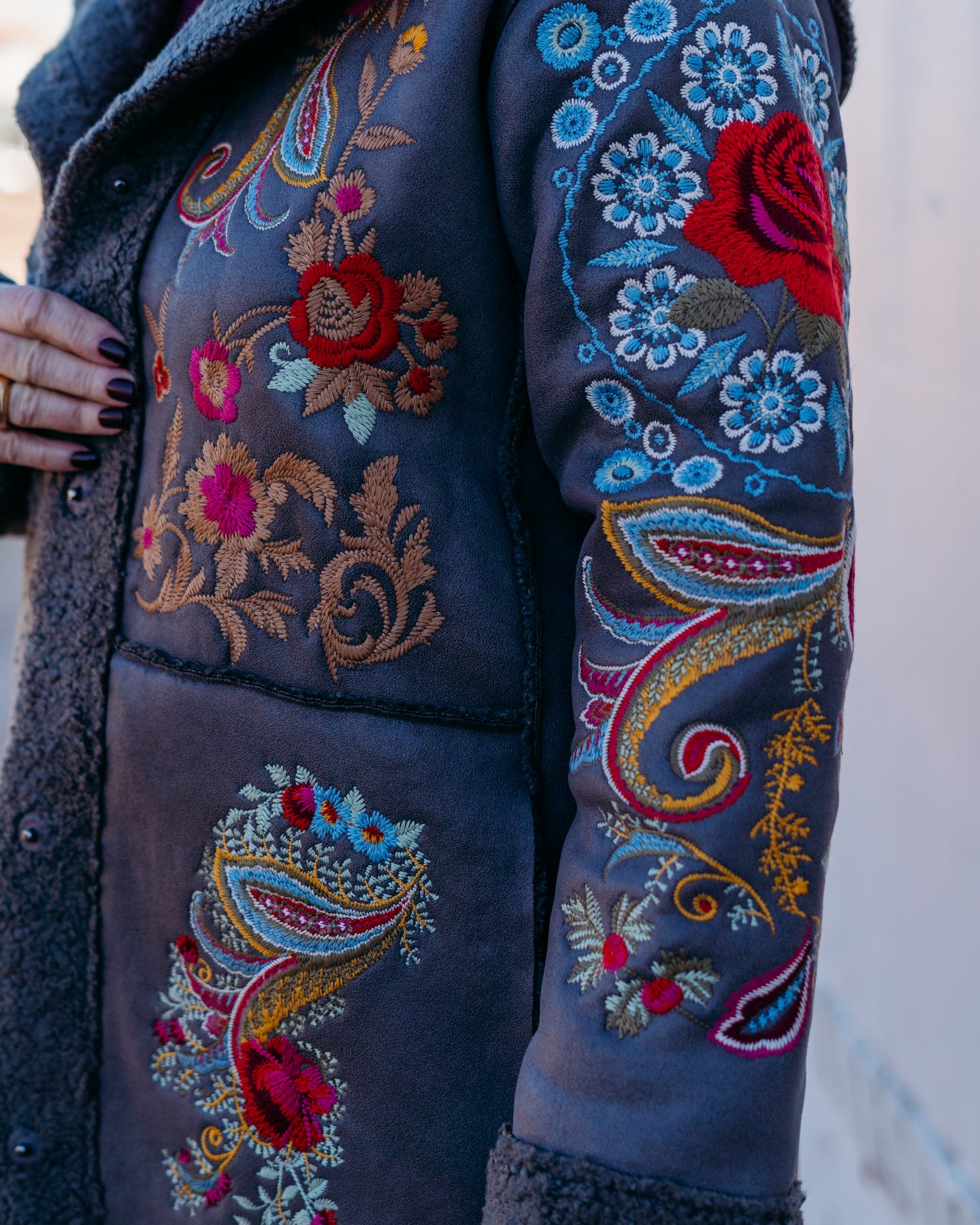 Johnny Was: Saturna Faux Suede Coat in Charcoal