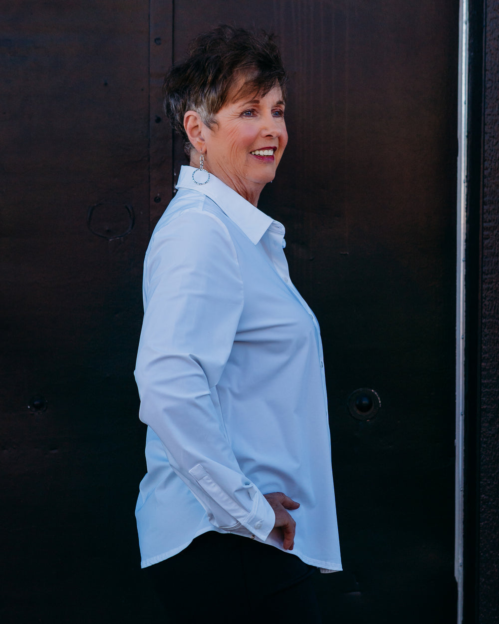 Liverpool: Long Sleeve Button Front Knit Shirt in White (LM8E25ETK)