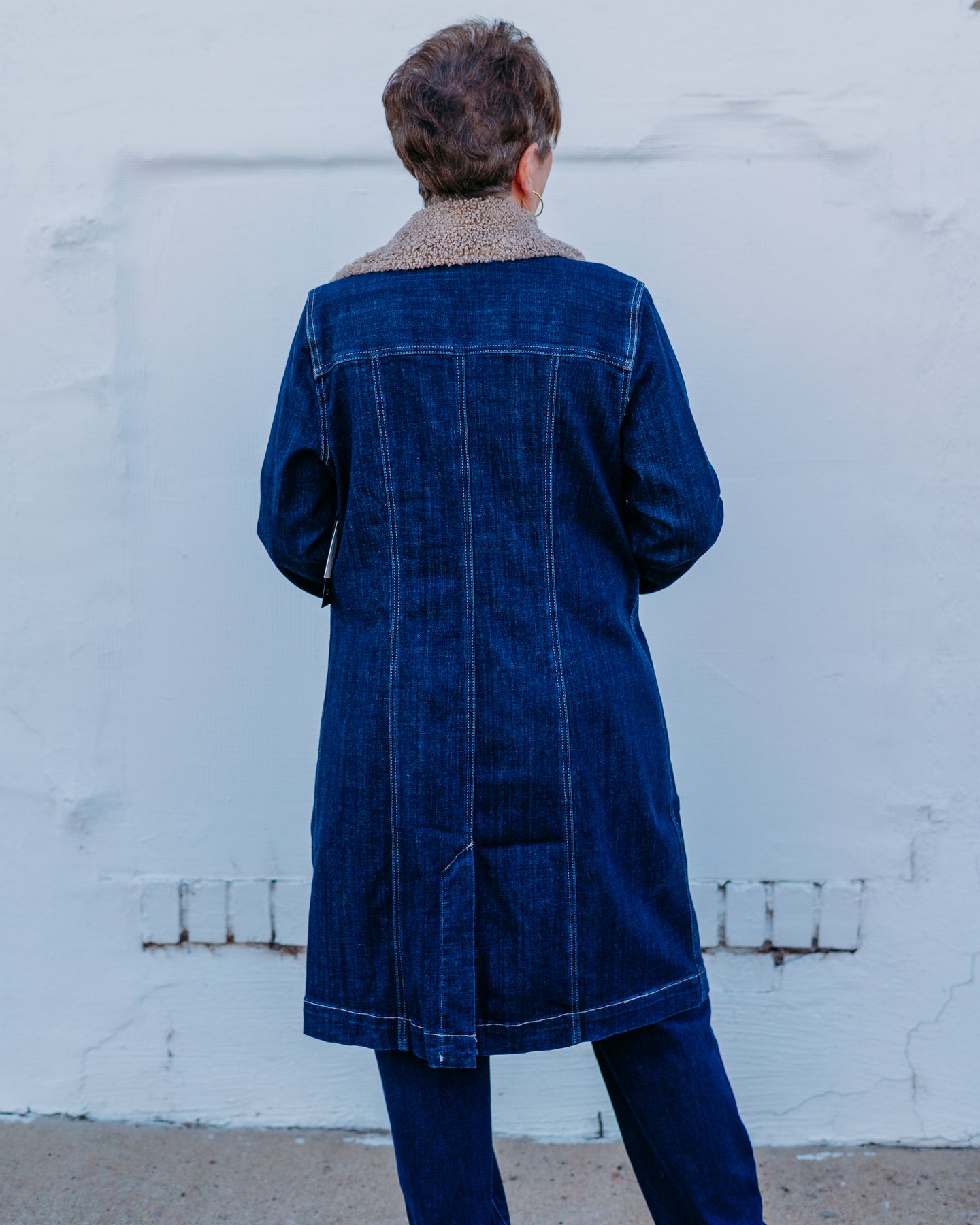 Liverpool: Sherpa Trimmed Notched Collar Jacket 38' in Rinse Wash