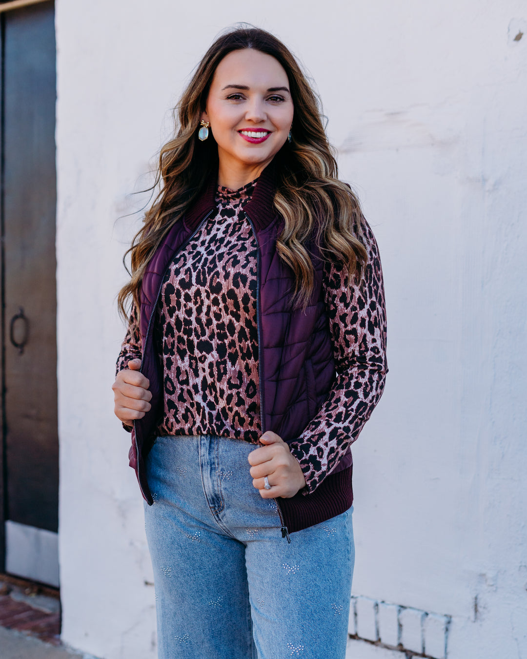 Liverpool: Sleeveless Quilted Front Full Zip Sweater Vest in Wine Berry