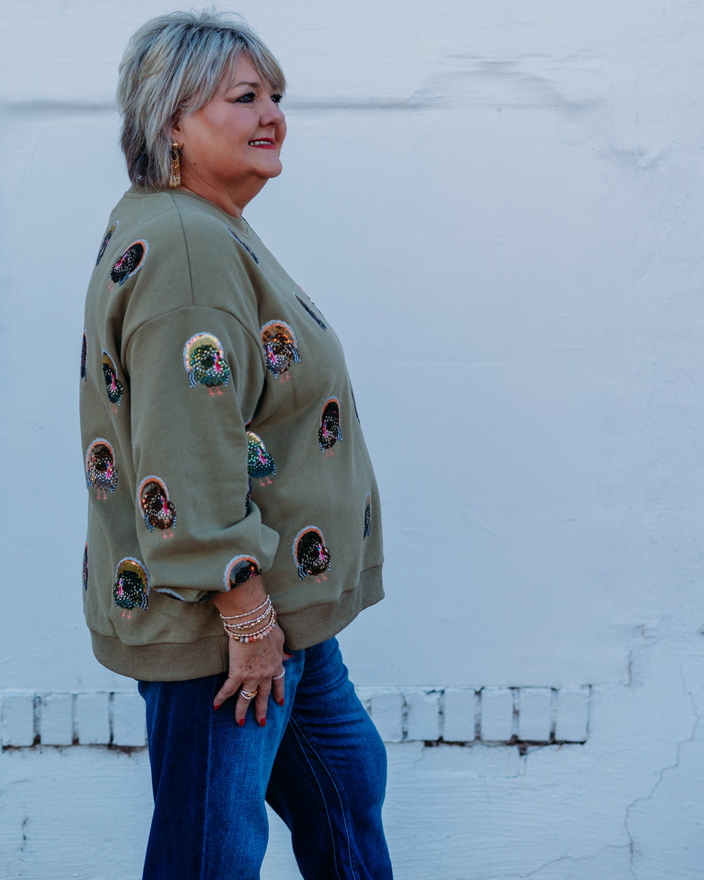 Queen of Sparkles: Scattered Turkey in Olive Green