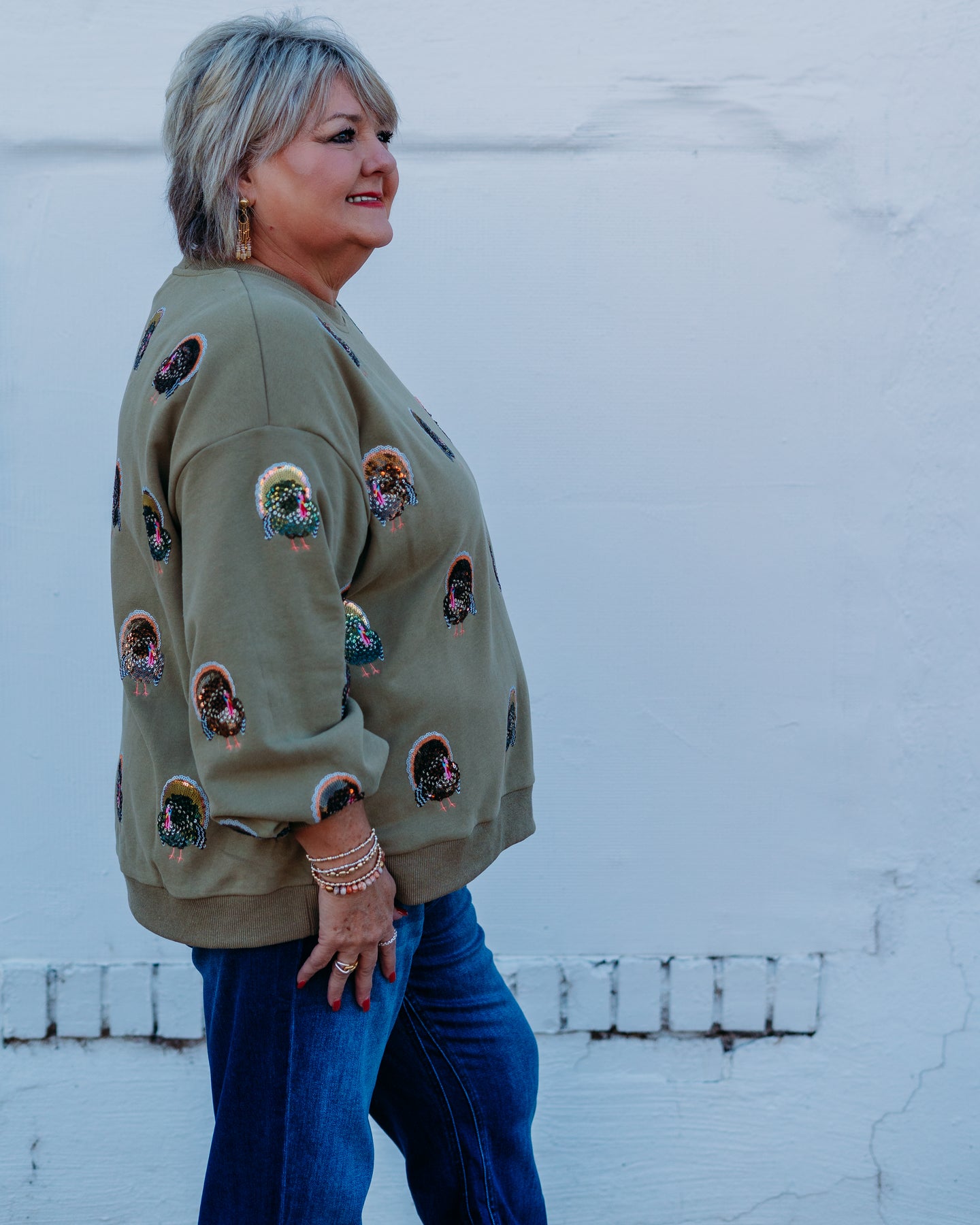 Queen of Sparkles: Scattered Turkey in Olive Green