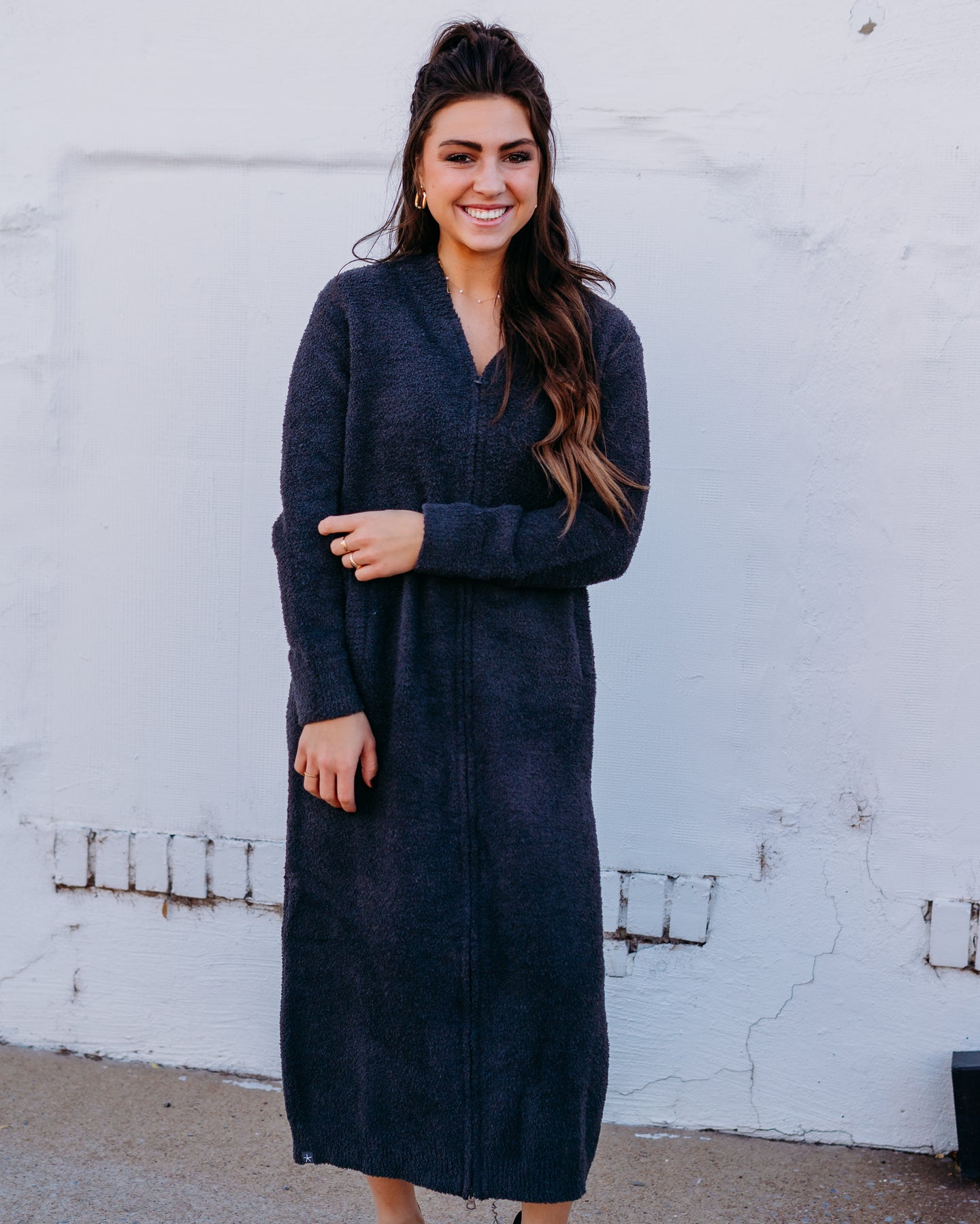 Wrap yourself in cloud-like comfort with the Barefoot Dreams CozyChic Full Zip V-neck in Carbon. This ultra-soft essential features a flattering V-neckline and convenient full zip closure, making it effortless to layer or wear solo. The rich carbon hue pairs beautifully with everything in your wardrobe. Perfect for cozy nights in or casual outings, this piece delivers that signature Barefoot Dreams softness you'll never want to take off. Elevate your loungewear game with timeless style and unbeatable comfort.