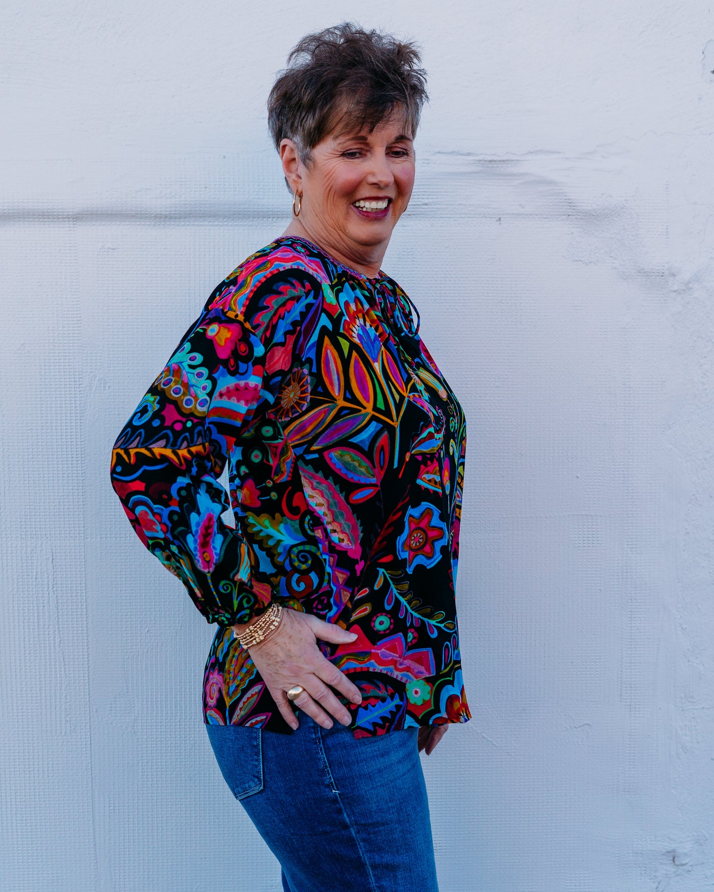 Step into effortless charm with the Johnny Was Margot Blouse in Dark Silvana. This playful blouse features intricate patterns and a relaxed fit that brings a touch of bohemian flair to your wardrobe. Perfect for layering or wearing on its own, it adds a whimsical vibe to any outfit while keeping you comfortable all day long. Embrace your free spirit with this standout piece!