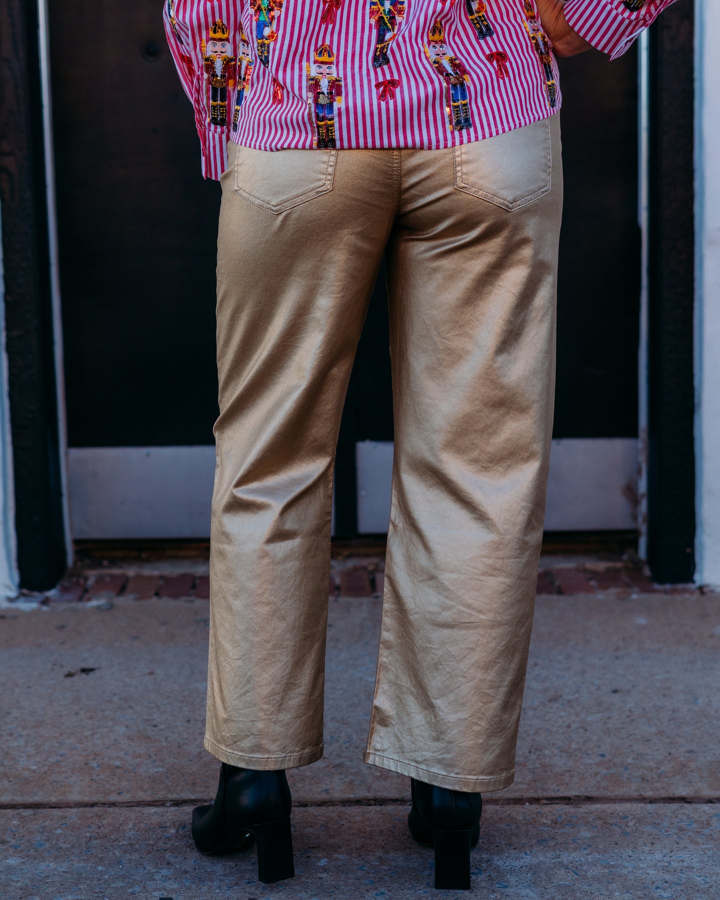 Step into sunshine with the Kut Charlotte High Rise Wide Leg pants in a dazzling gold hue. These pants combine a flattering high-rise fit with breezy wide legs, offering comfort and style that moves with you. The regular hem keeps the look polished, perfect for turning heads whether you're out for brunch or dancing the night away. Add a pop of playful glam to your wardrobe with these effortlessly chic trousers.