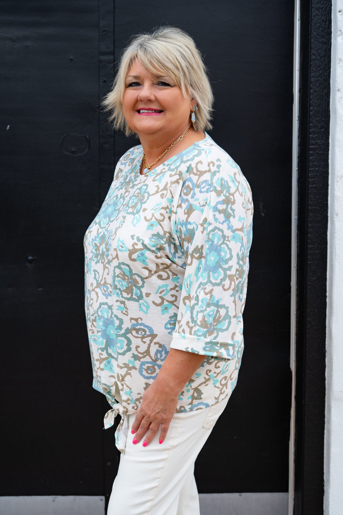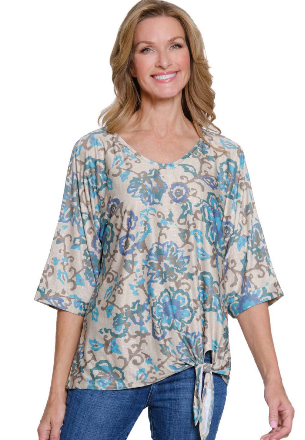 Multiples: Cuffed Elbow Sleeve Tie Waist Top (M35109TM)