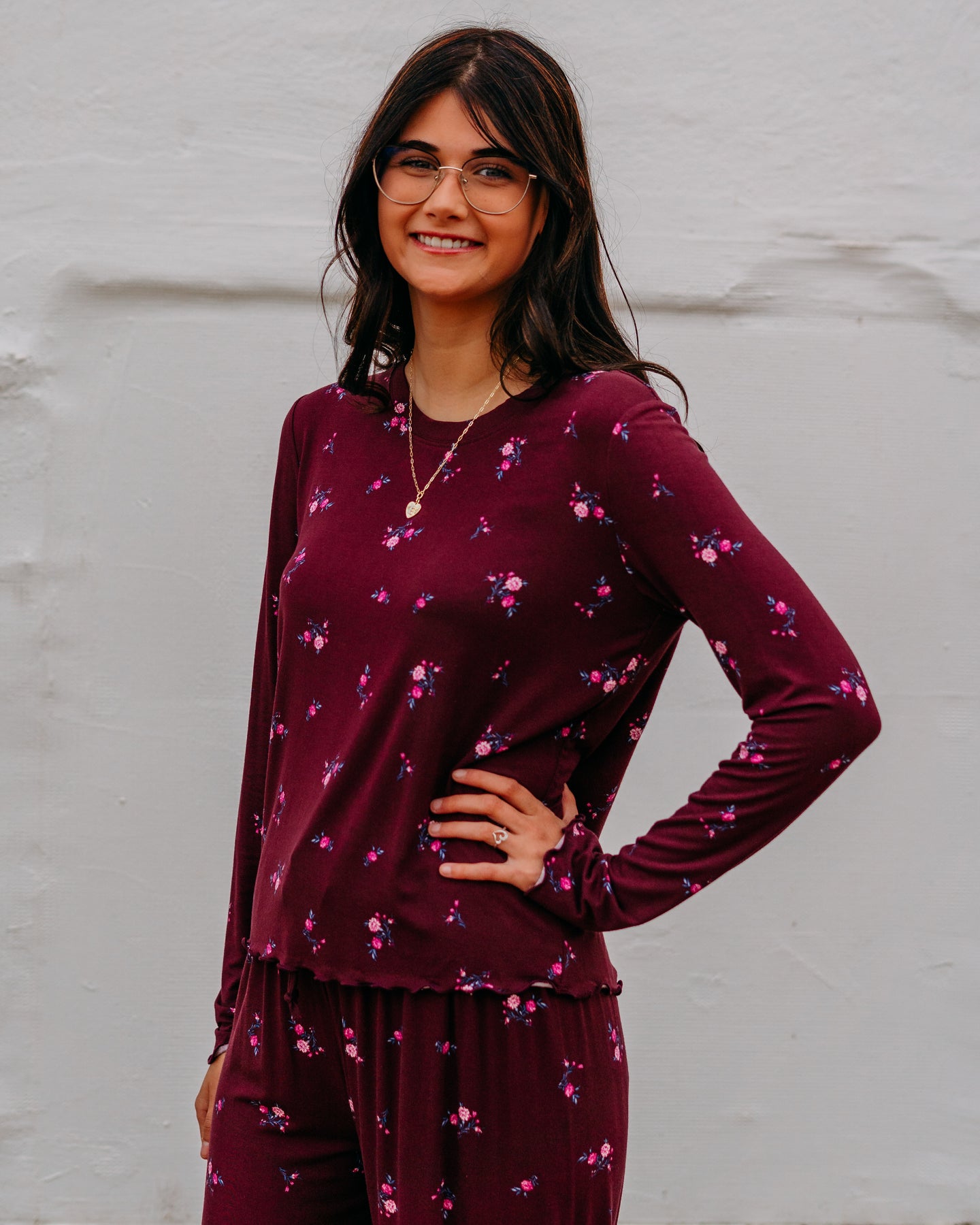 Z Supply: Bella Ditsy Long Sleeve Top in Merlot