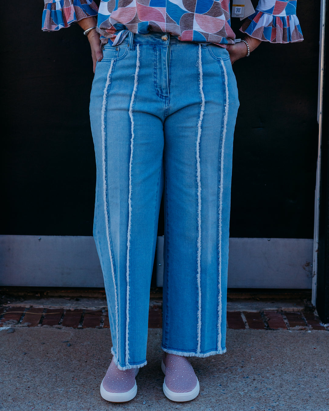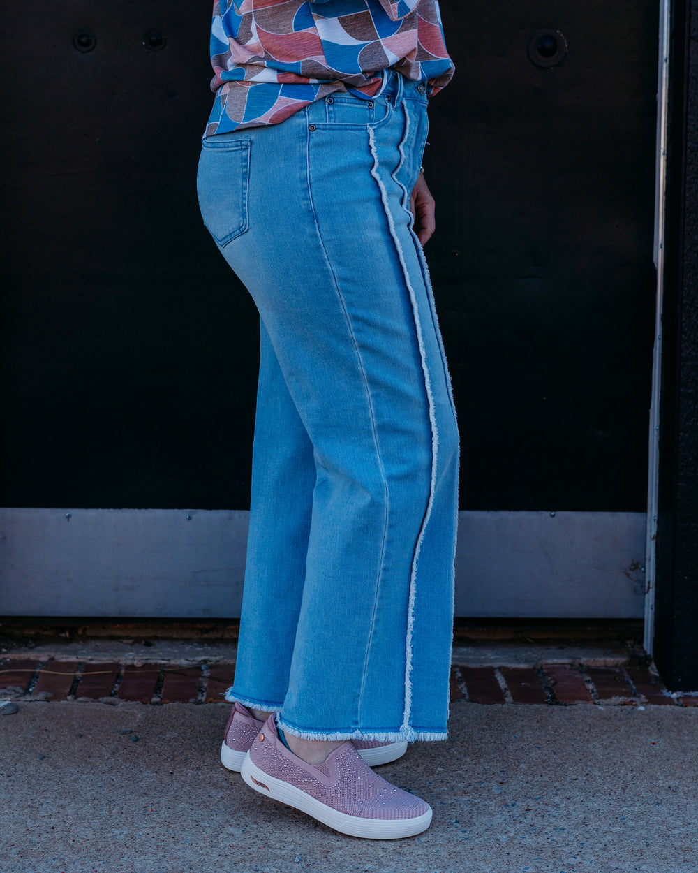 Multiples: (Slimstation) Light Indigo Wide Leg Cropped Jeans with Front Seam (M16708TM)