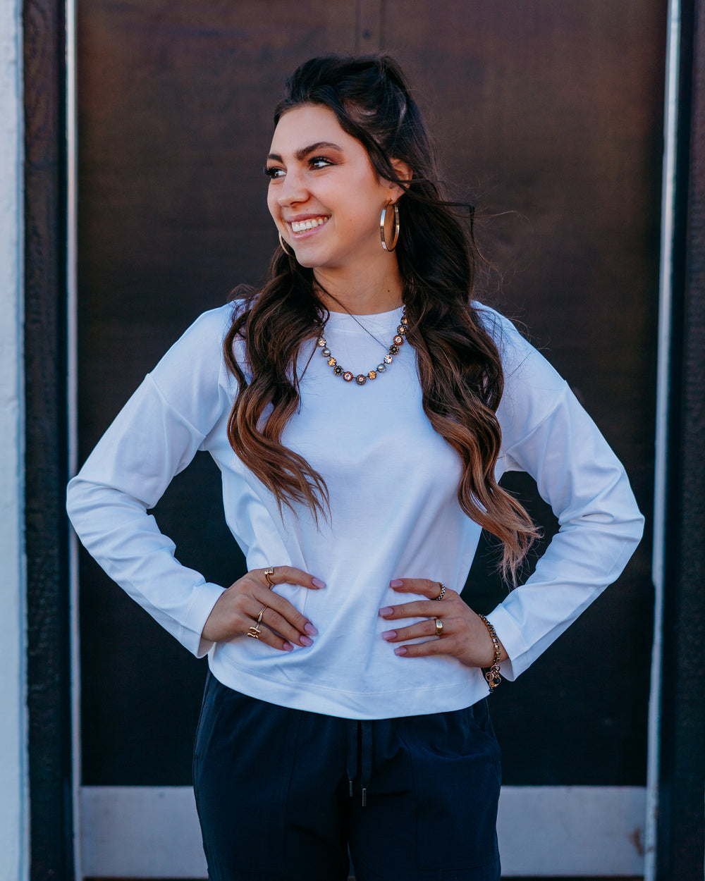 Spanx: Cotton Long Sleeve Crewneck Top in Classic White