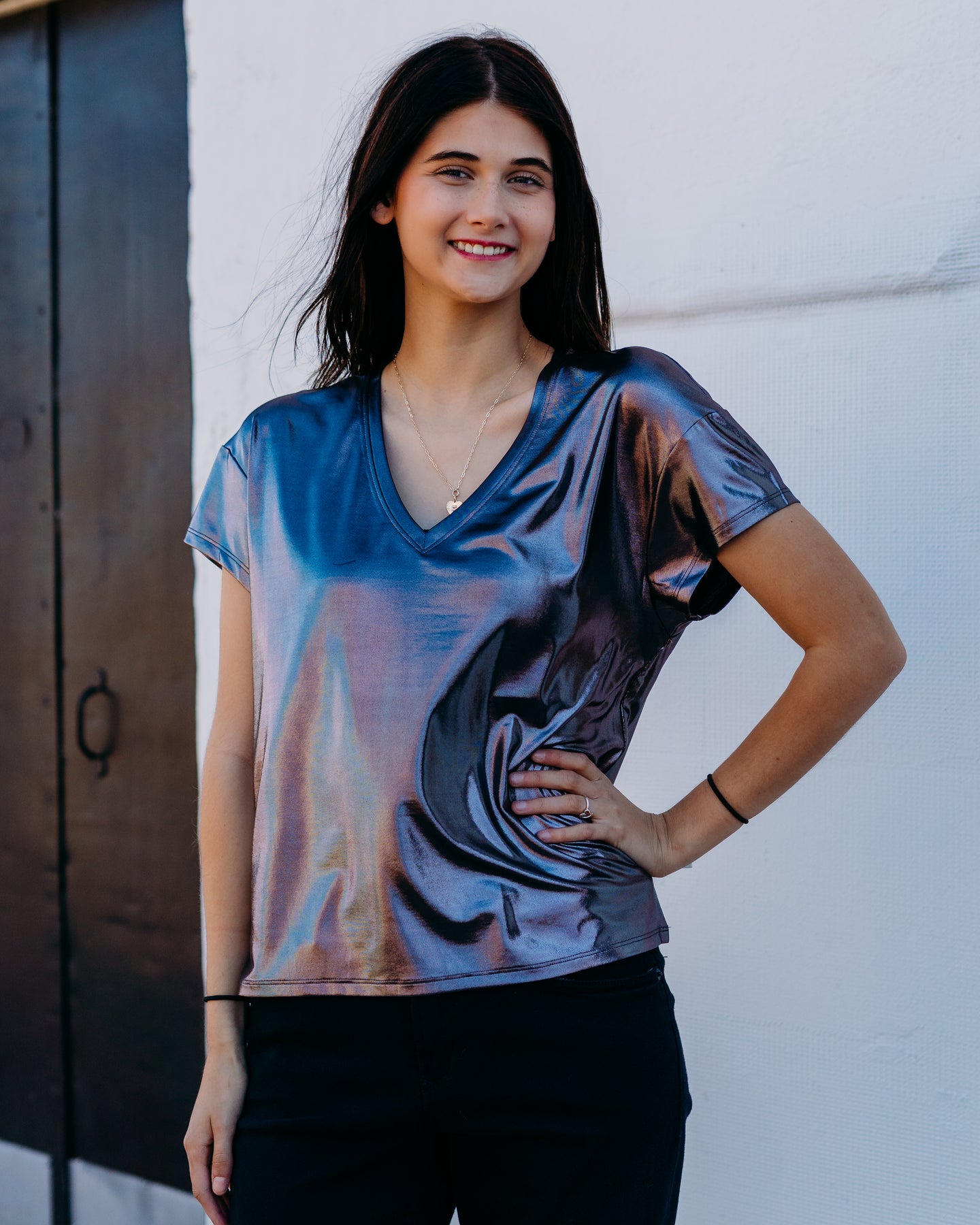 Shine bright and steal the spotlight in the Another Love Lumi Top in Metallic Black. This shimmering piece adds a dash of glam to any outfit, perfect for dancing the night away or turning heads at your next event. Lightweight and effortlessly chic, it’s your new go-to for making every moment sparkle.