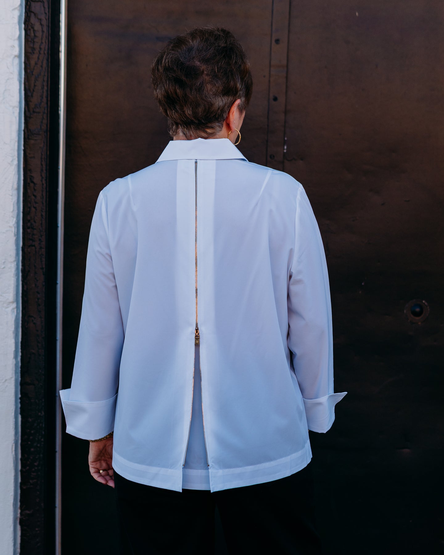 Joseph Ribkoff: Stretch Poplin Button-Front Blouse with Zipper Accent (253923)