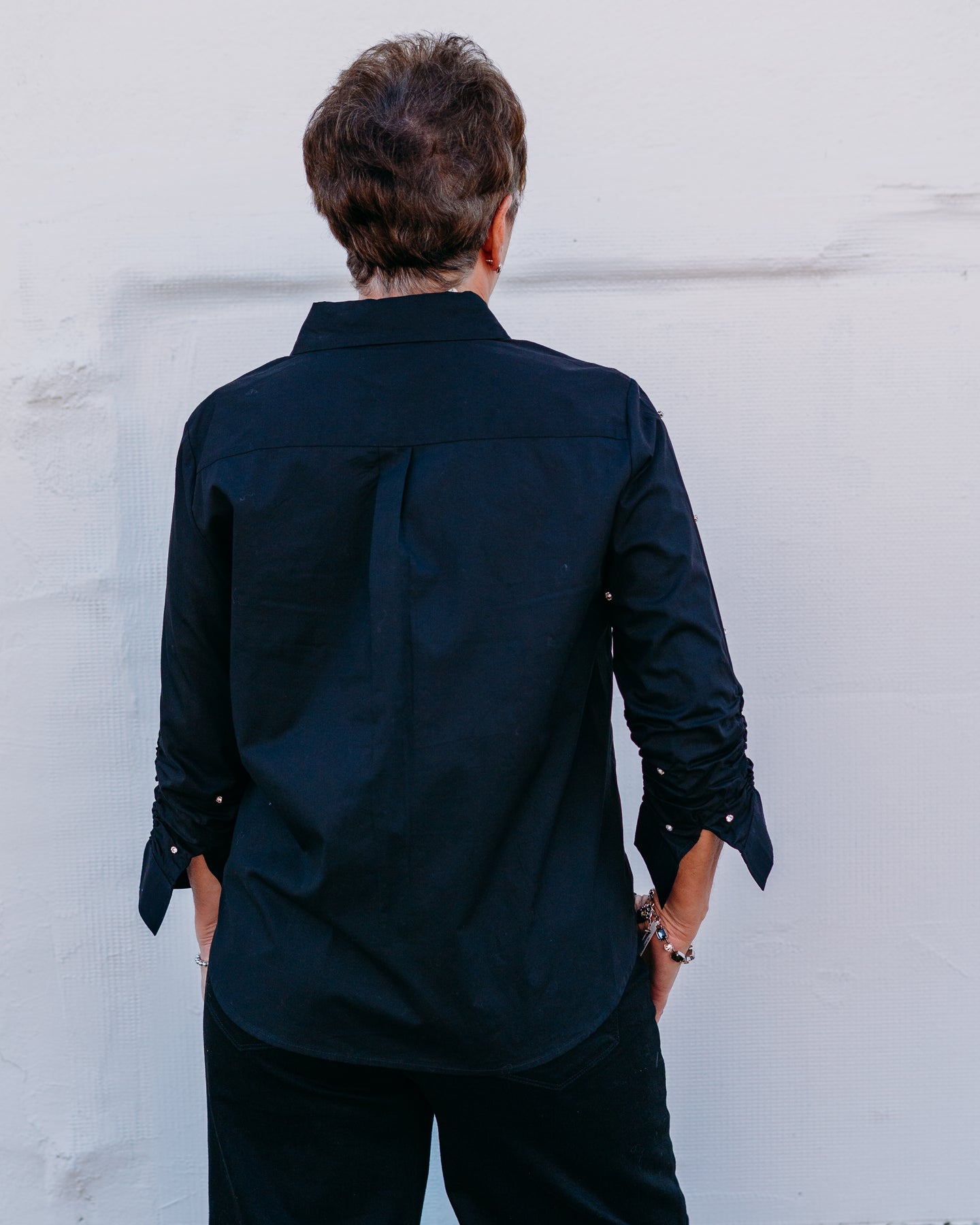 Karen Kane: Embellished Shirt in Black