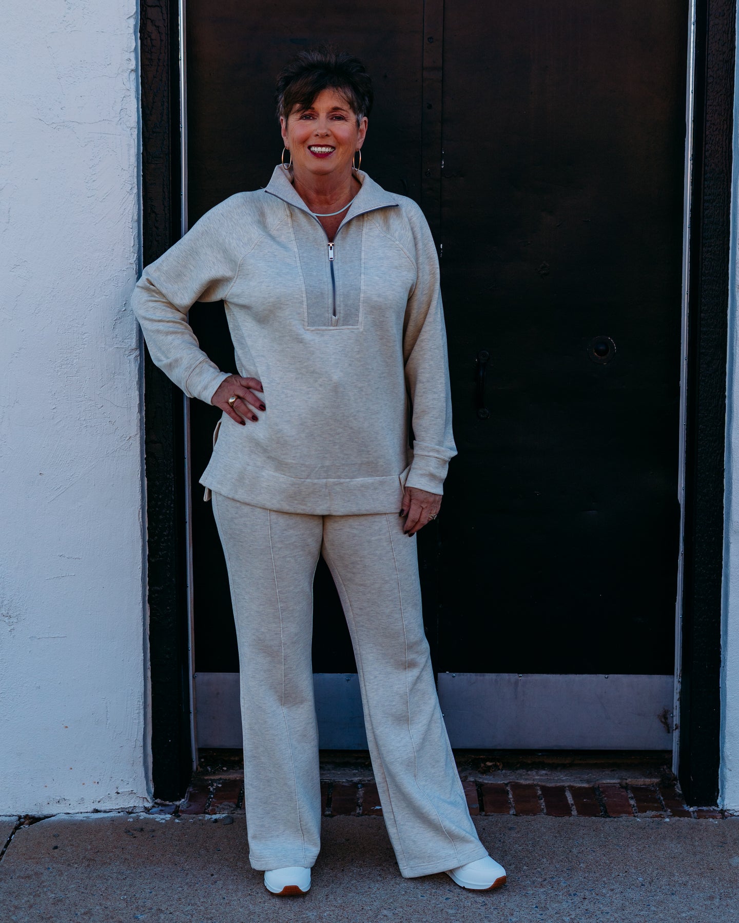 Spanx: Brushed AE Half Zip Tunic in Heather Cream