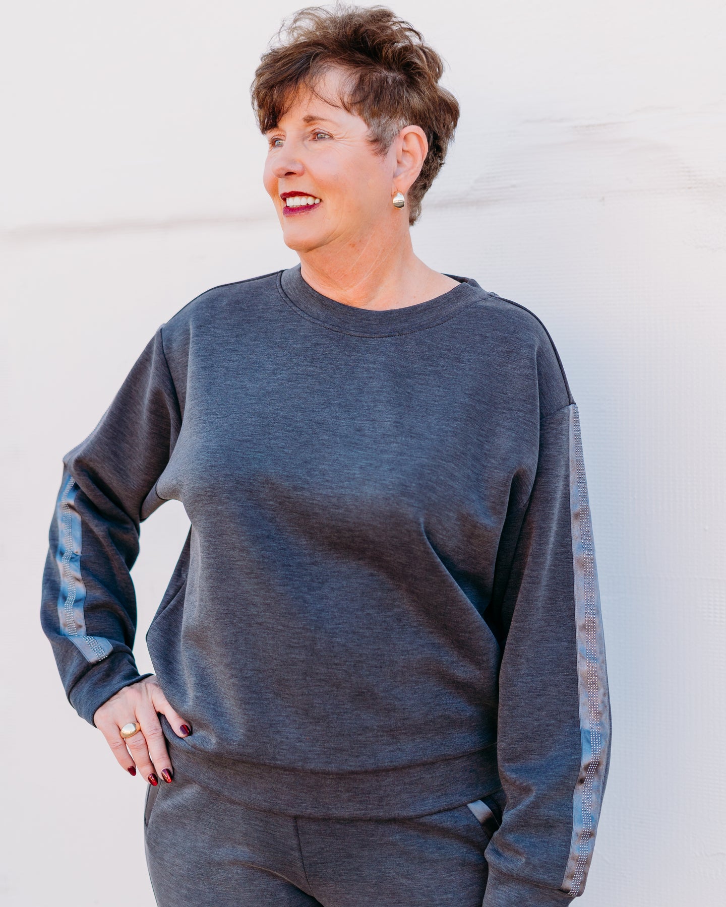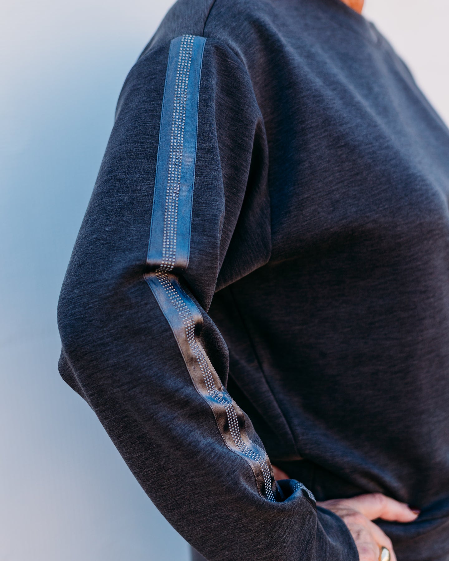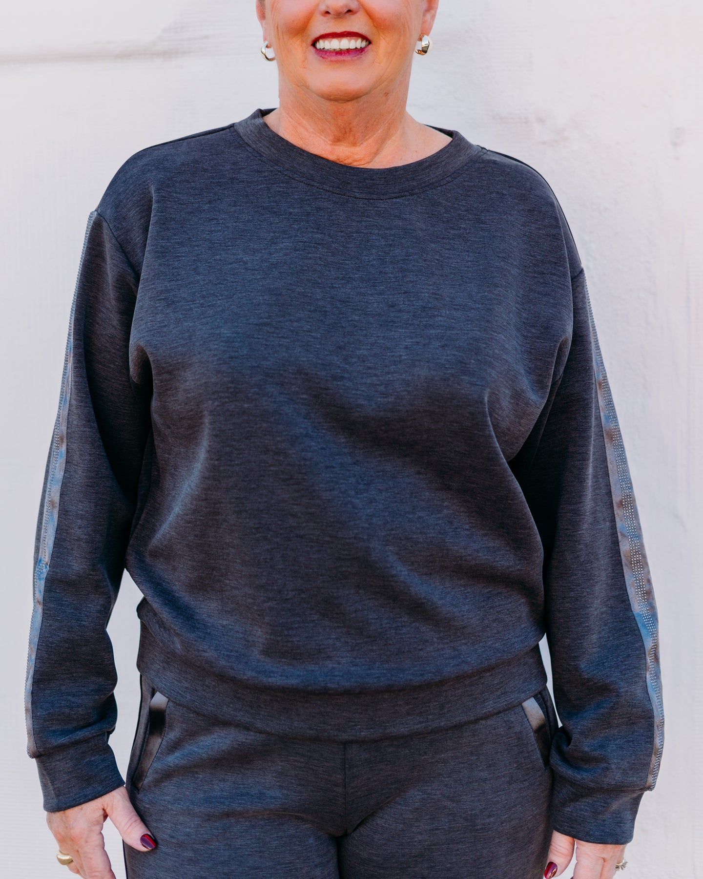 Shine like a star in our Esqualo: Dark Grey Modal with Rhinestone Trim (05504). Made with soft modal fabric for ultimate comfort. Each piece is adorned with sparkling rhinestones for a touch of glamour. Perfect for a night out or a special occasion.