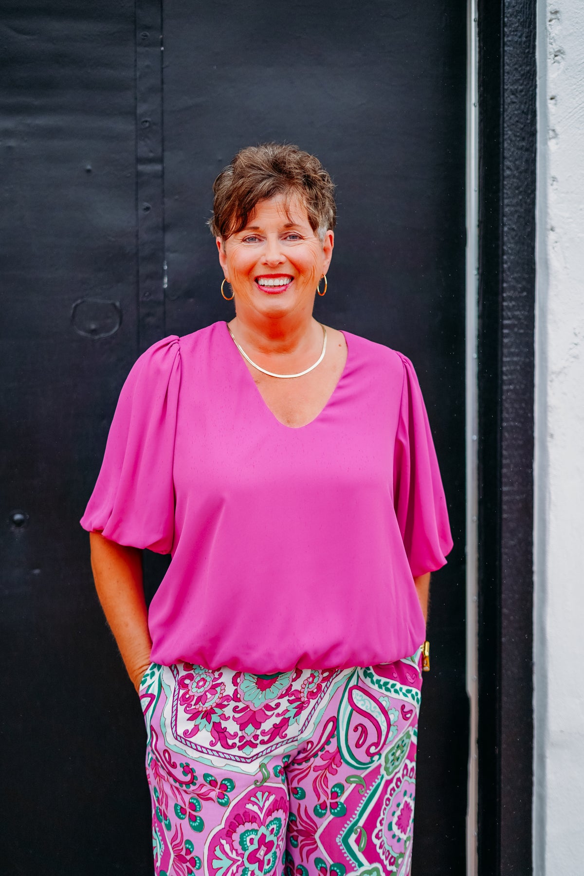 Bring some pop to your wardrobe with Karen Kane's Puff Sleeve Top in Orchid! This playful top adds a touch of whimsy to any outfit. Its puff sleeves and vibrant color make it the perfect piece for any fun-loving fashionista. (Ruffles not included.)
