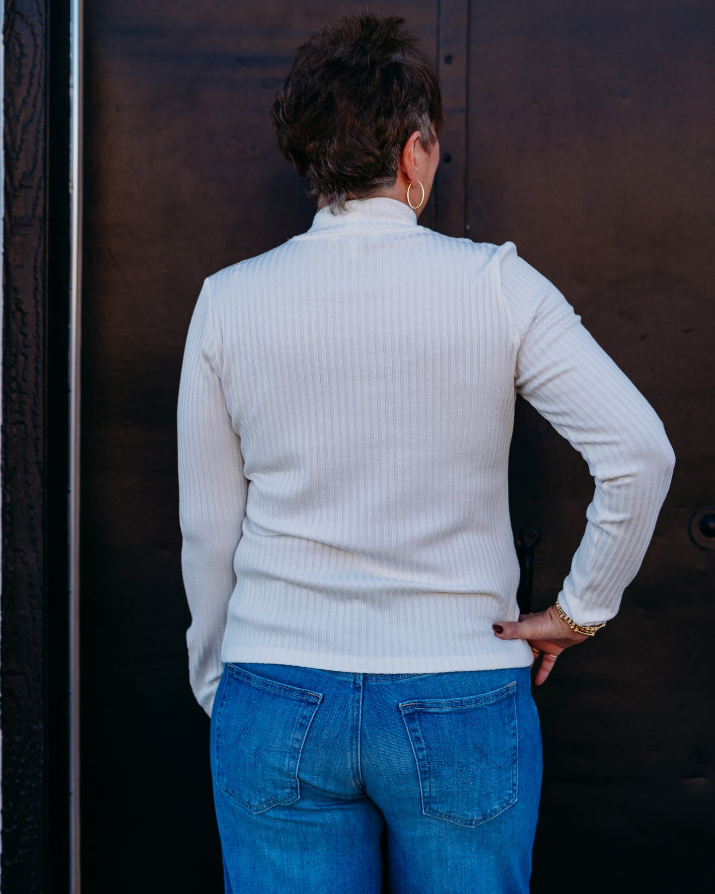 Liverpool: Long Sleeve Mock Neck Knit Top in Snow