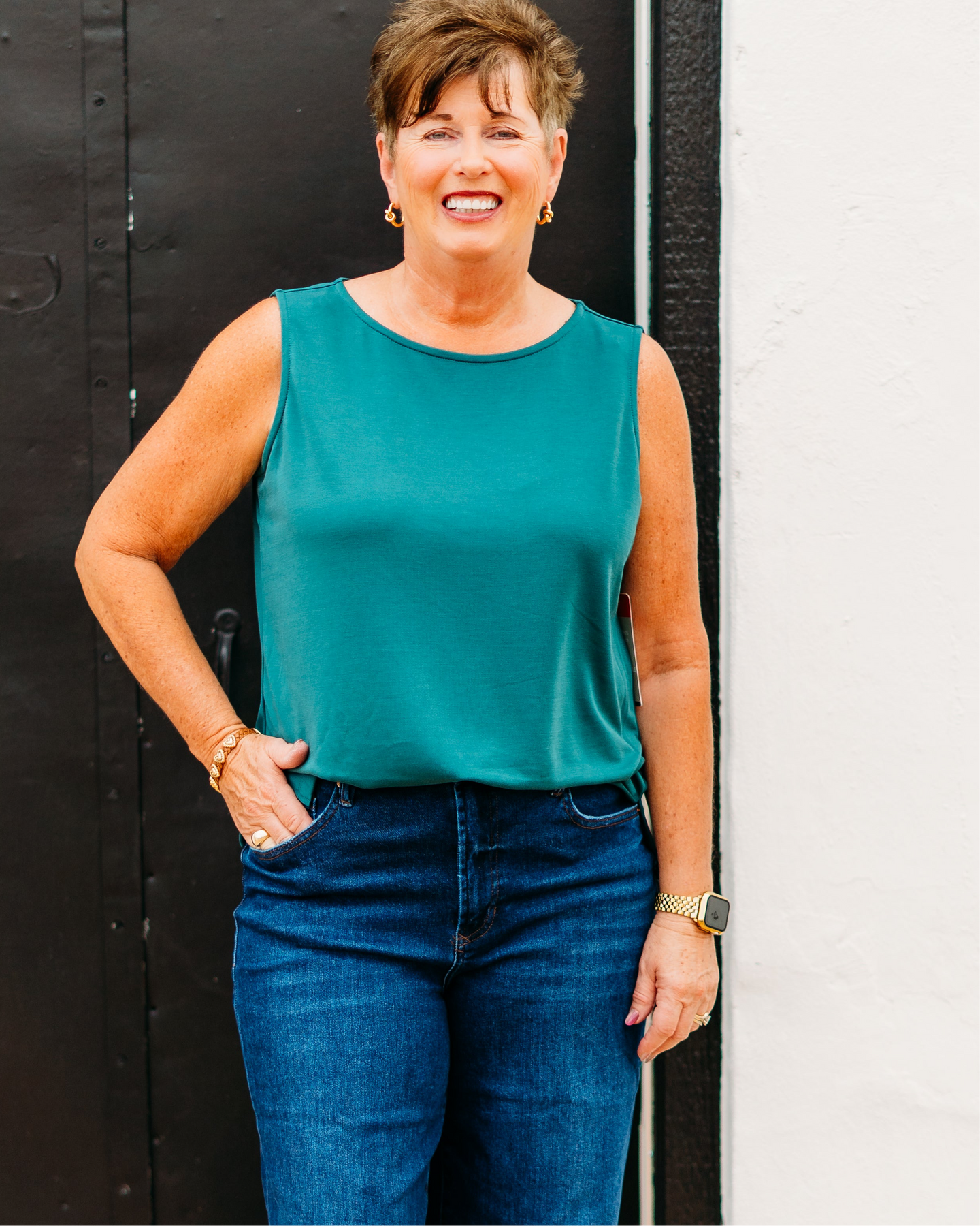 Multiples: High Neck Tank Top in Green(M35101TM)