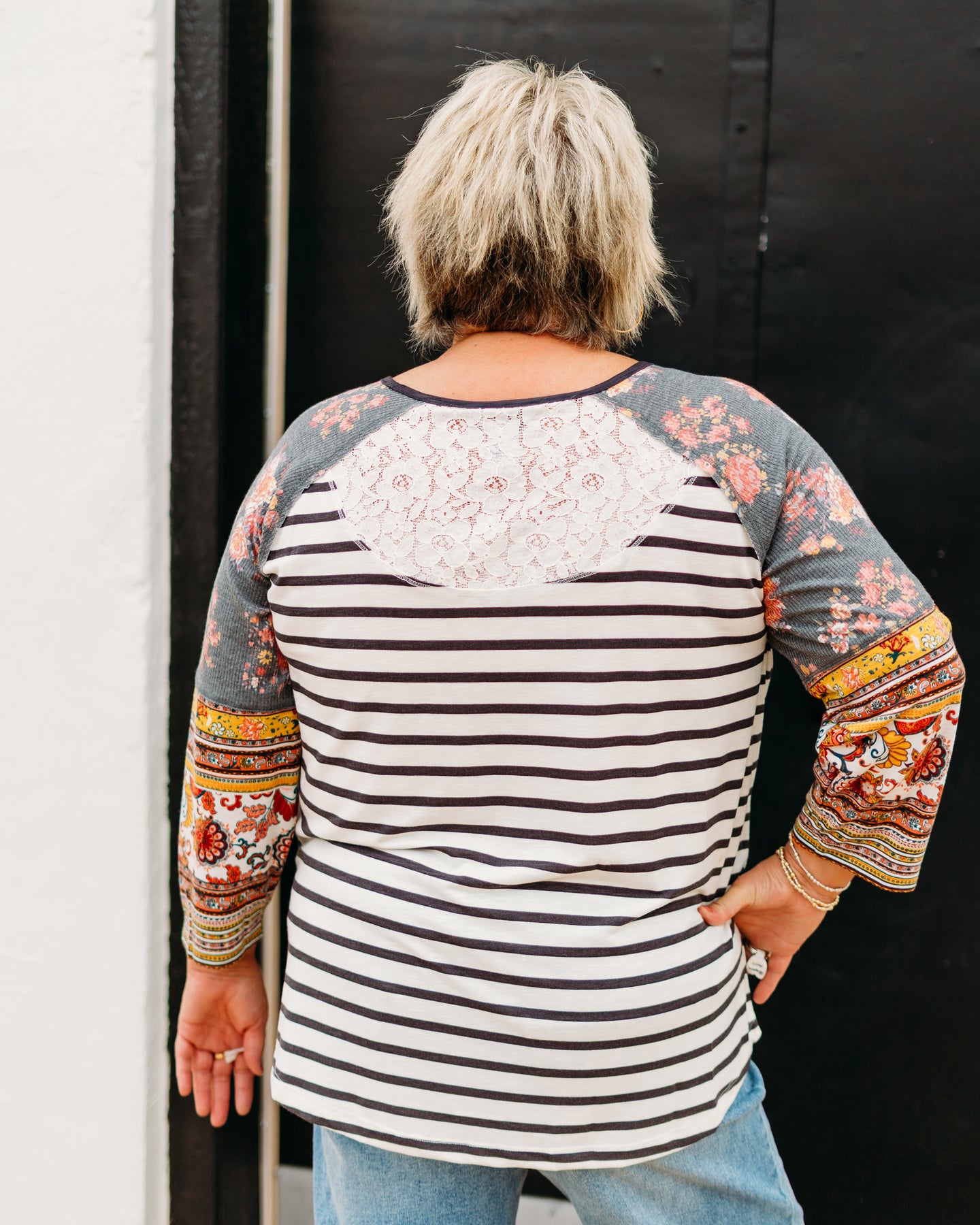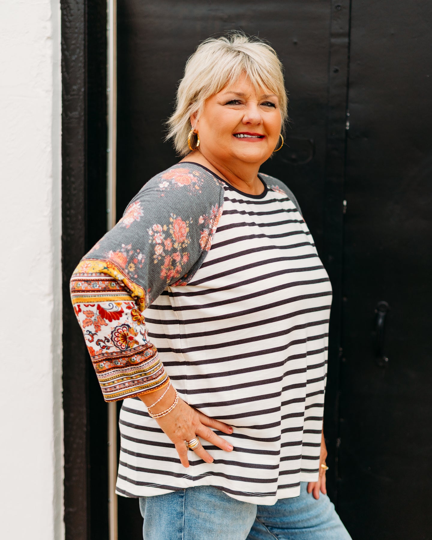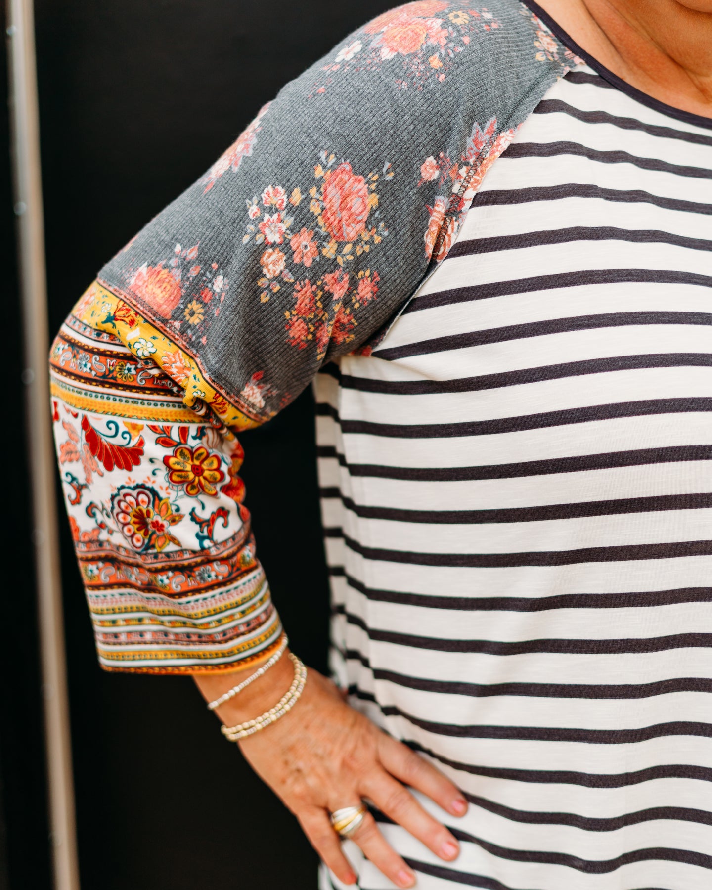 Multiples: 3/4 Raglan Sleeve Scoop Neck Top in Multi (M35603TM)
