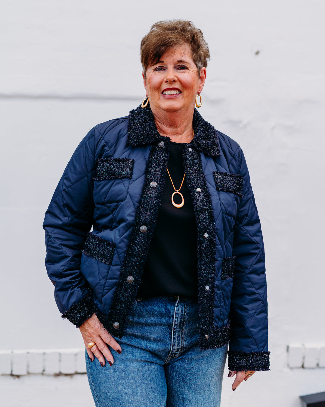 French Dressing Jeans: Indigo Quilted Sparkle Tweed Jacket 1458209