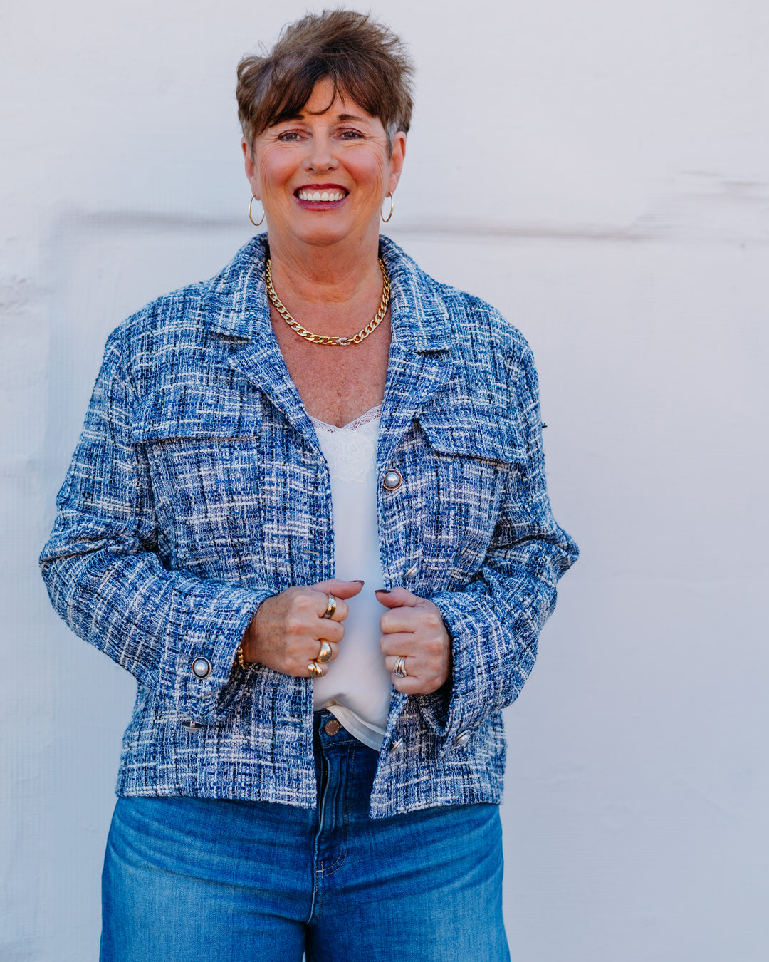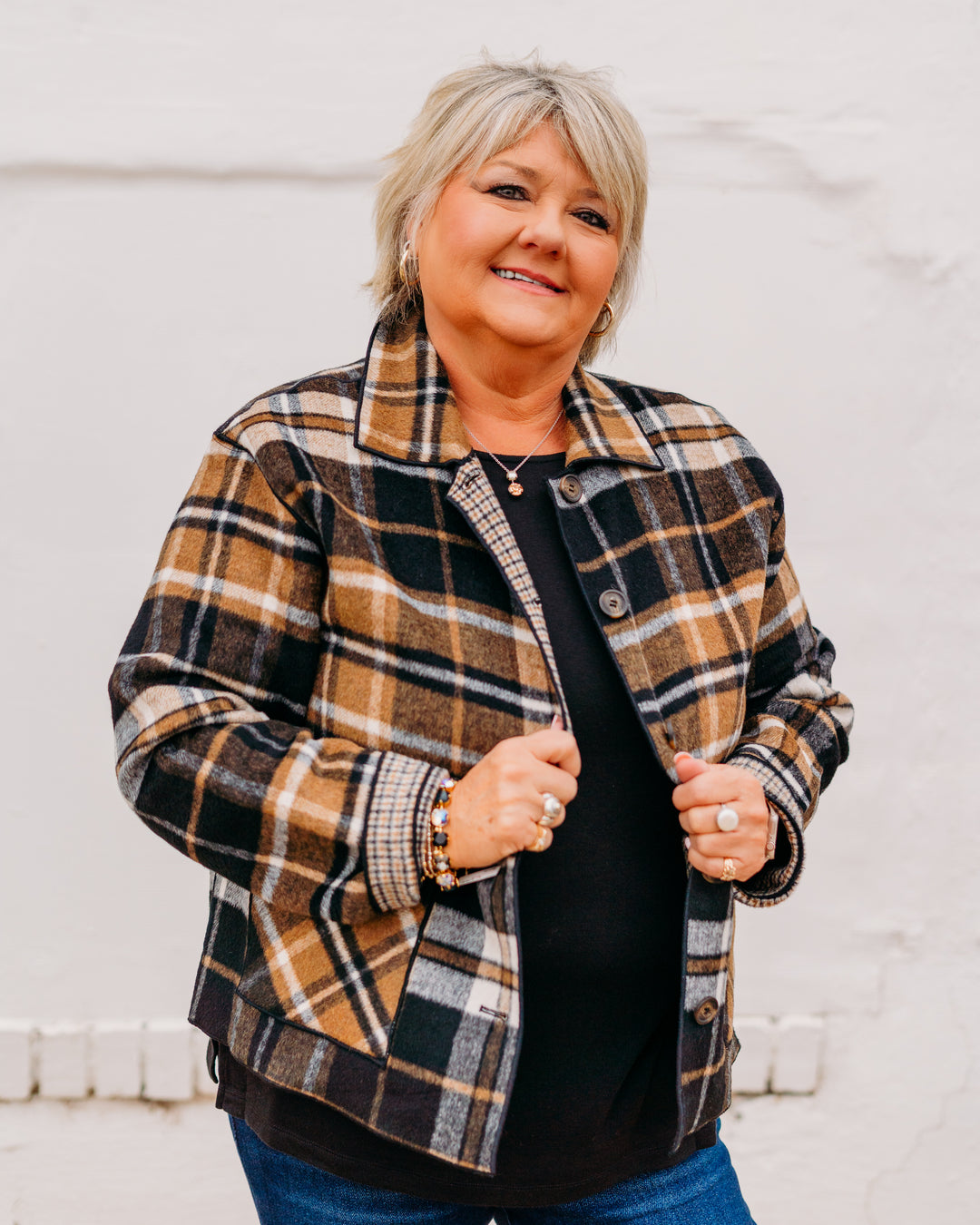 Charlie B: Reversible Plaid Jacket in Cocoa