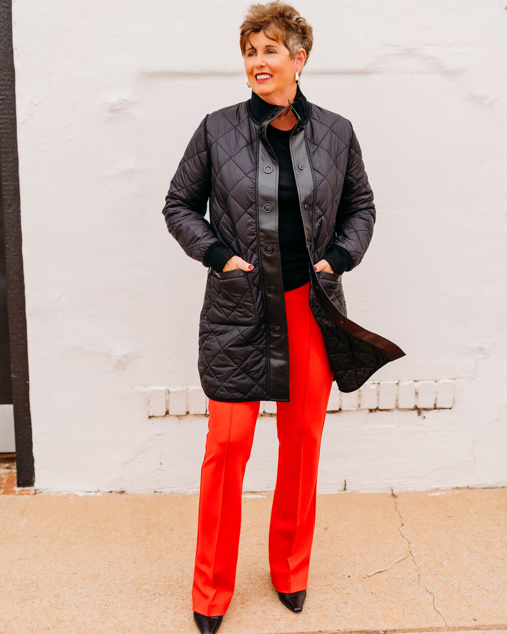 Charlie B: Boucle Quilted Short Vest in Khaki