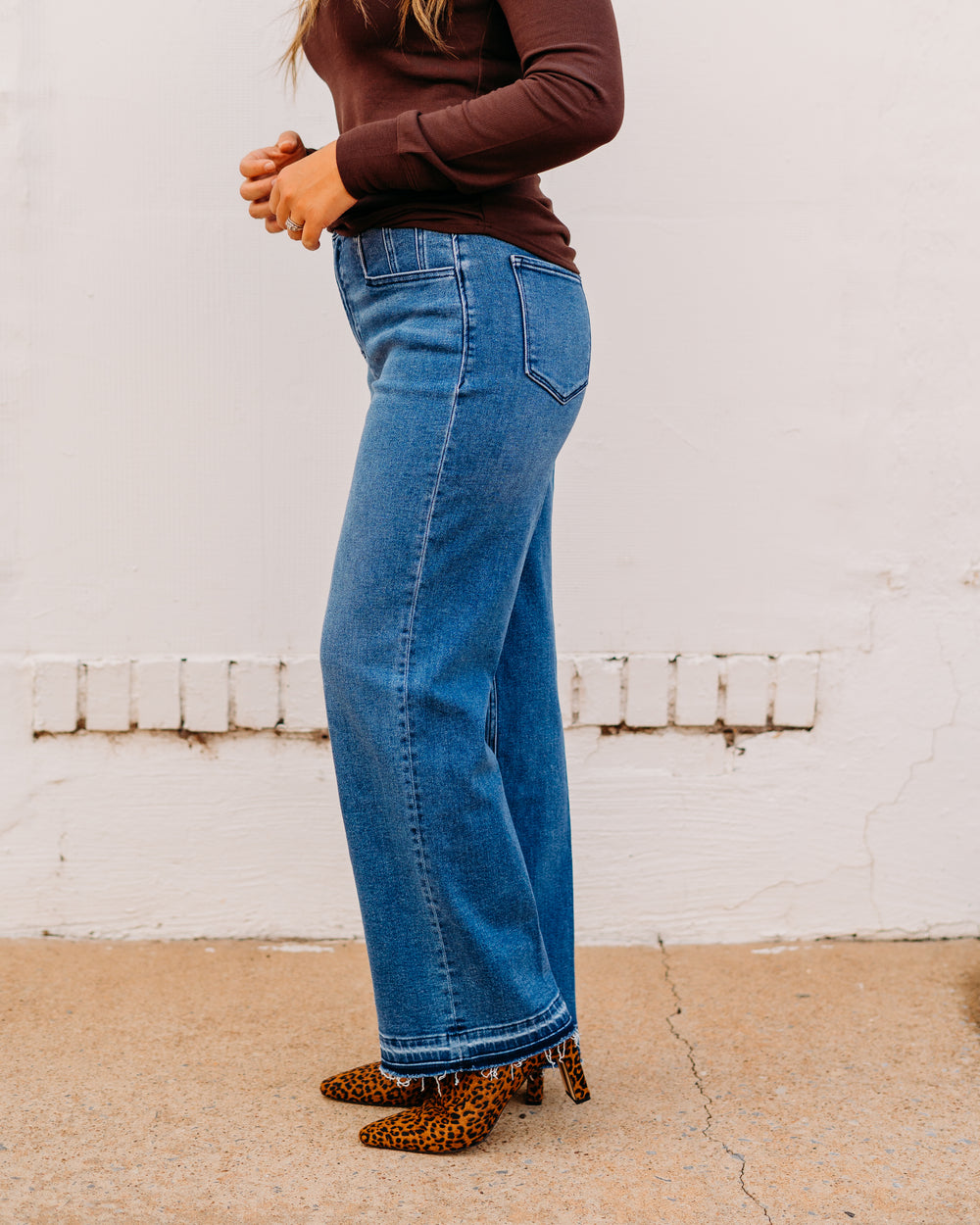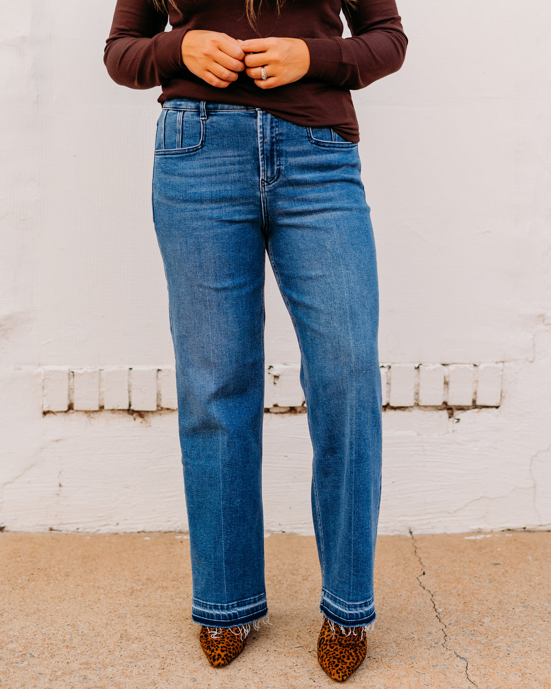 Kut: Meg High Rise Fab AB Wide Leg Raw in Ruby Red