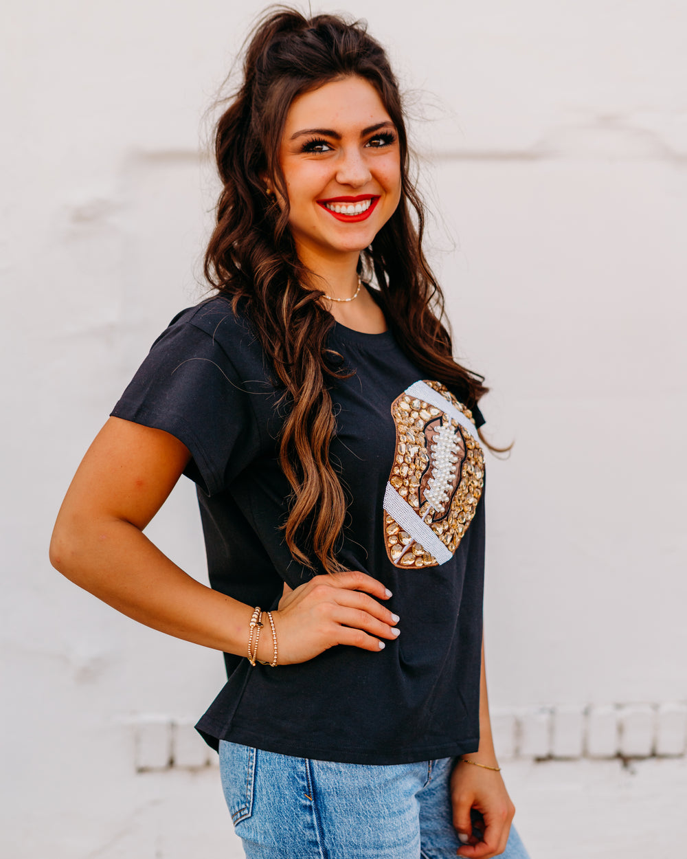 Queen of Sparkles: Black Jeweled Football Tee