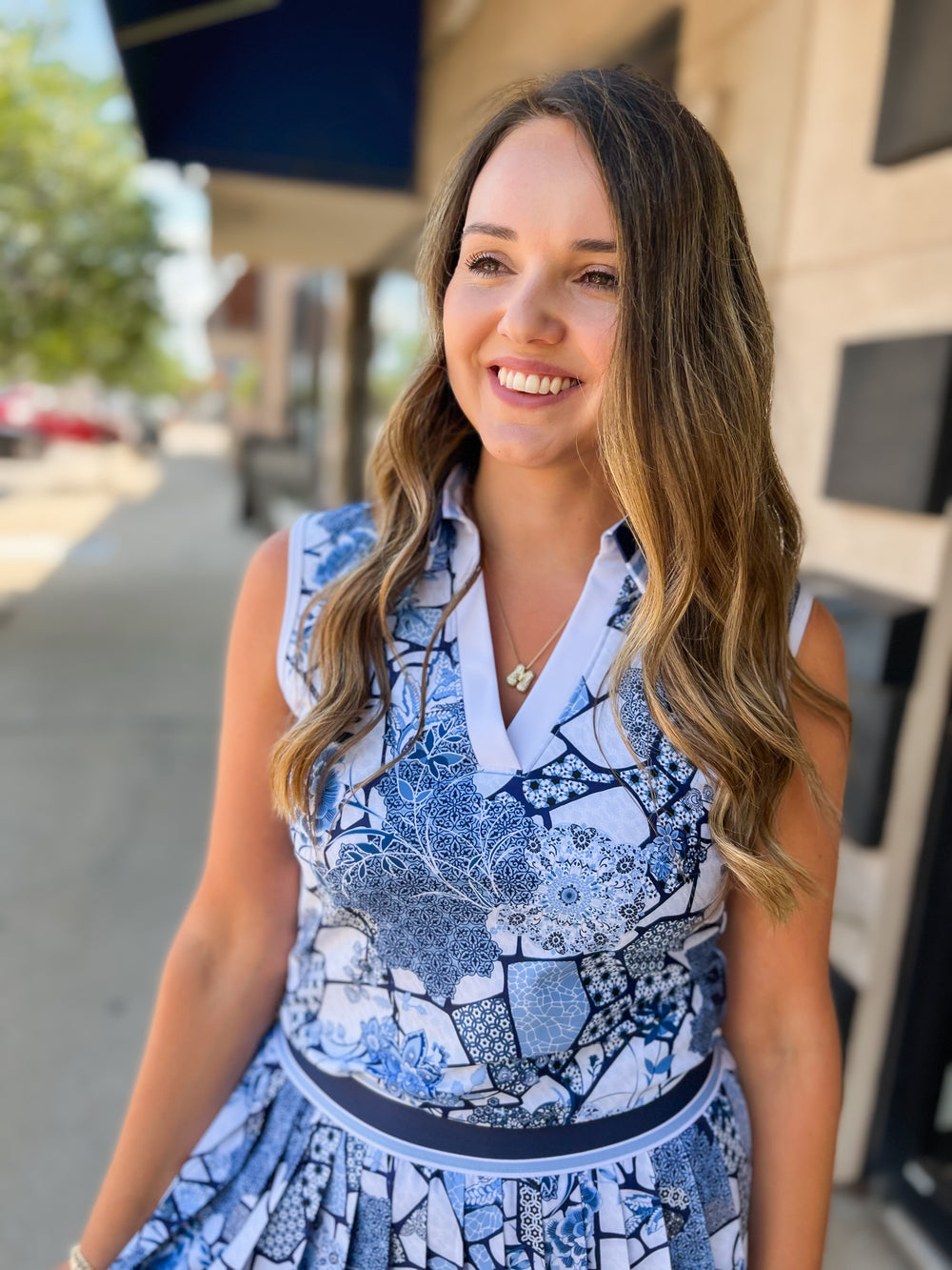 Crafted from a recycled polyester blend, the Moonlight Glass Basic Polo Tank offers a fresh take on classic sportswear. Featuring an athletic-inspired striped collar and an open V-neckline, this sleeveless top offers a fitted feminine silhouette. Pair with a white tennis skirt and classic white sneakers for a casual weekend look.