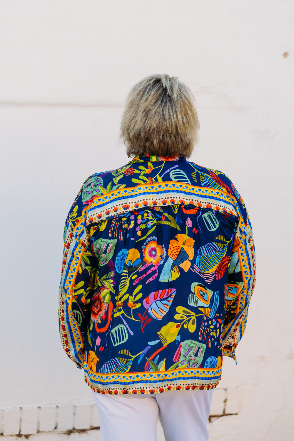 Get groovy with the Johnny Was Audrey Oversized Shirt in Far Out. This playful top features a fun and quirky print, perfect for adding a unique touch to any outfit. With its oversized fit, it's both stylish and comfortable. Step out in style with this far out piece!