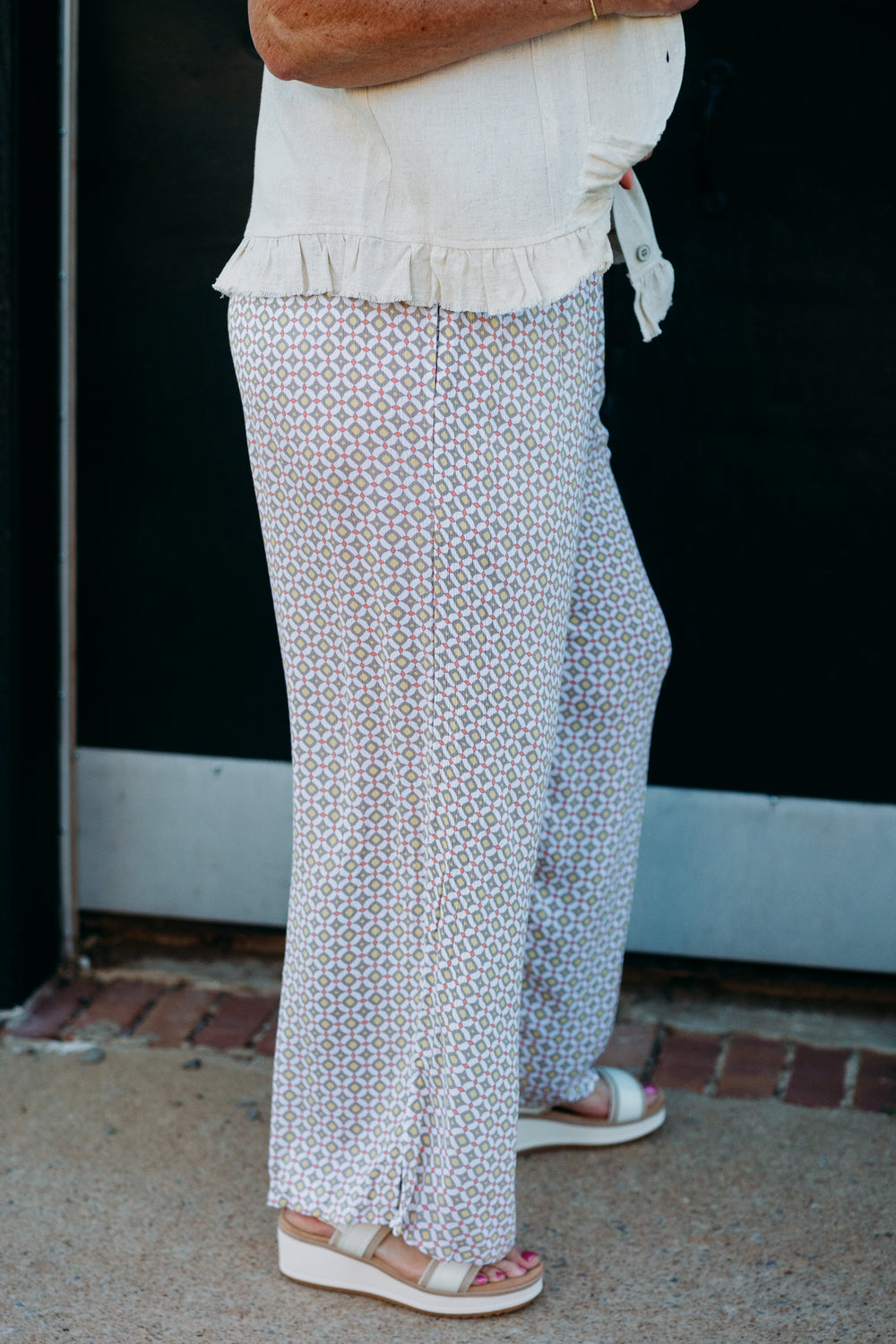 Multiples: (Island Tropics) Elastic Shirred Pant Wide Leg Crop in TILMLT M25707PM