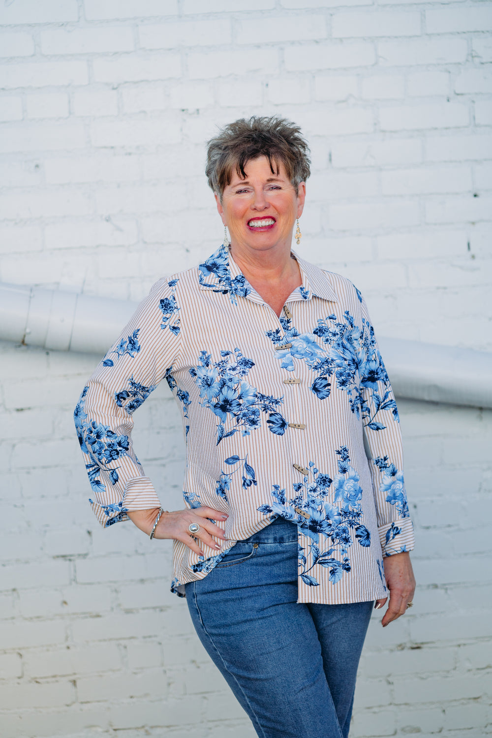 This vibrant Multiples 3/4 sleeve shirt features a stylish turn-up cuff design. Perfect for adding some color and variety to your wardrobe.