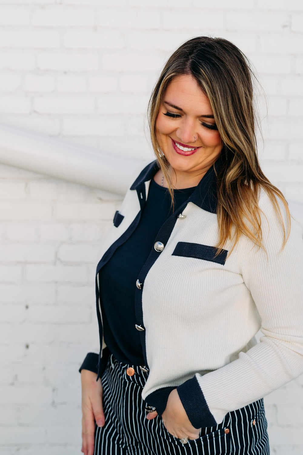This Steve Madden cardigan in whisper white is perfect for adding a touch of personality to any outfit. With its playful and quirky design, this cardigan will make a statement while keeping you warm and cozy. Stay stylish and comfortable with the Ayda cardigan.