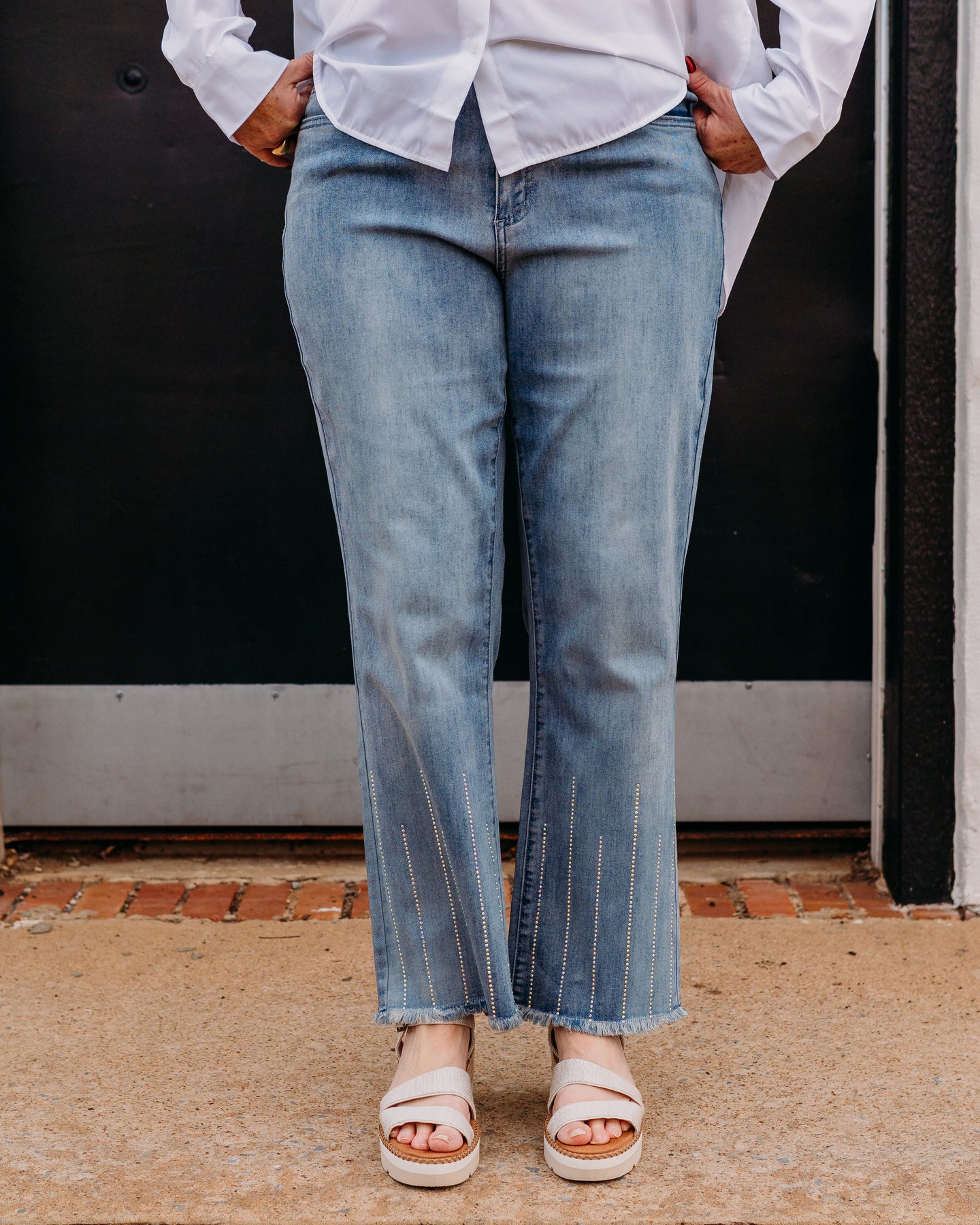 Joseph Ribkoff brings effortless style to your everyday rotation with these straight-crop jeans that hit just right. Crafted with a flattering silhouette, they feature eye-catching rhinestone accents that add a touch of sparkle and personality. Perfect for dressing up a casual look or keeping things chic and understated, these jeans are a versatile wardrobe essential that works as hard as you do.