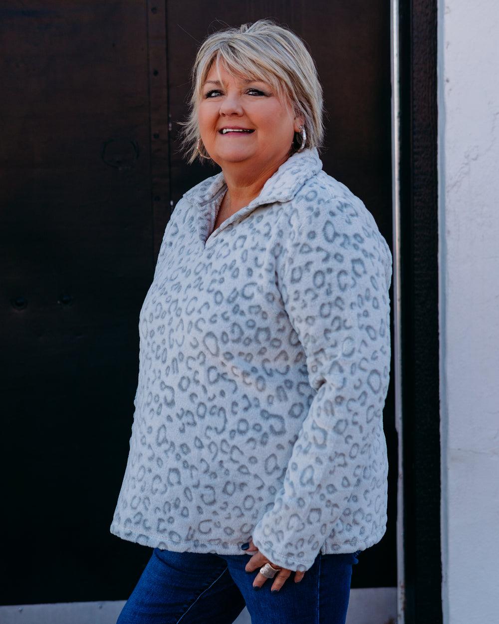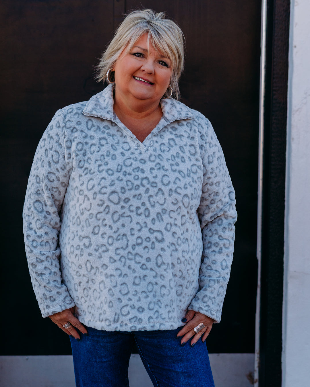 Multiples: (Snow Leopard) Cheetah Pattern Plush Knit Top M45502TM