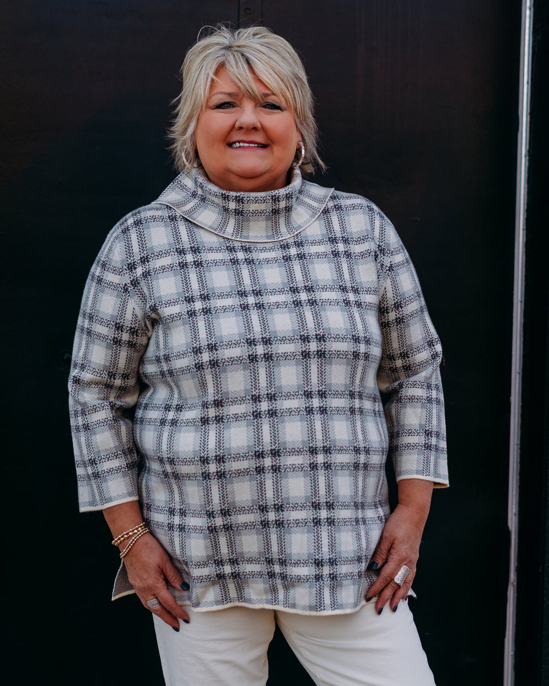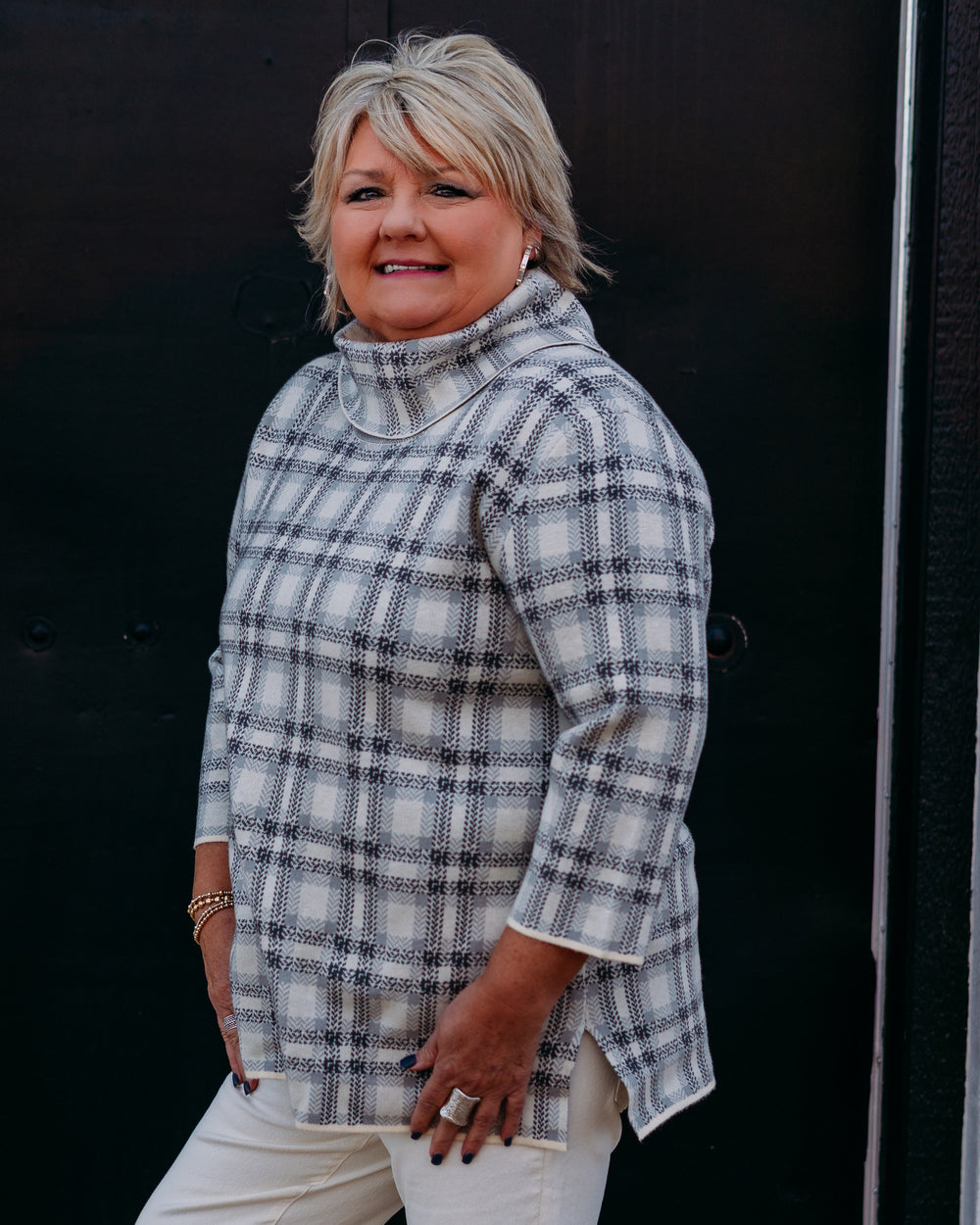 Joseph Ribkoff: Plaid Jacquard Sweater Knit Top in Merlot/Multi (243948F25)